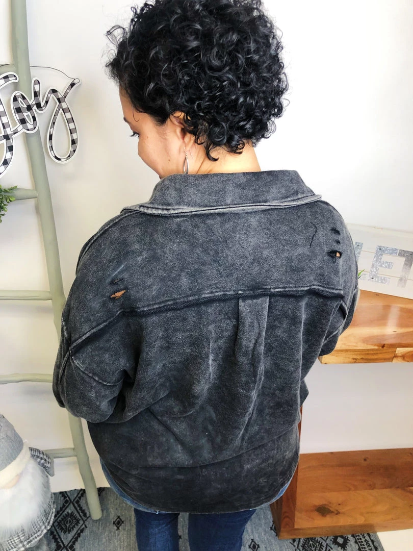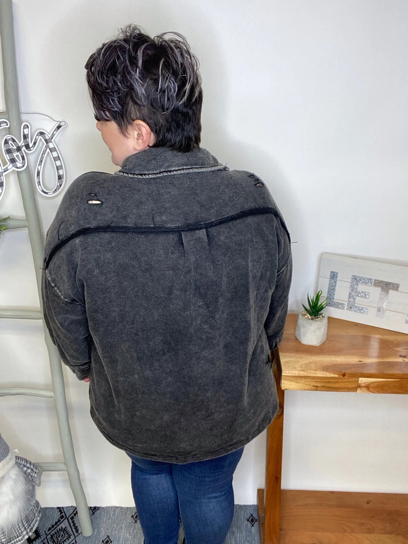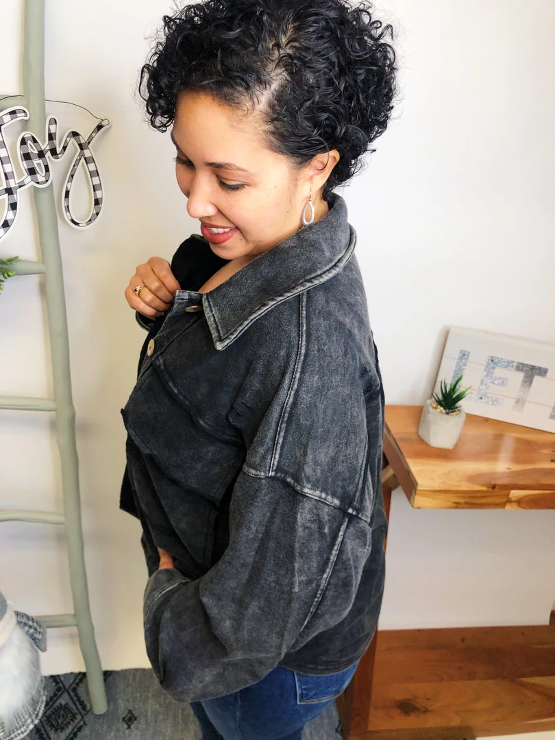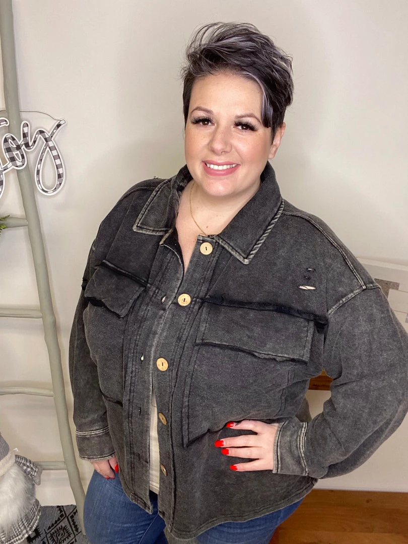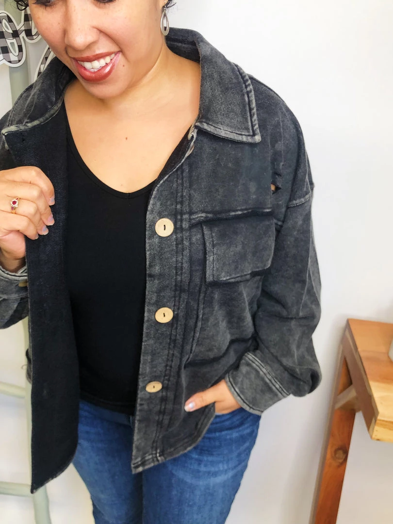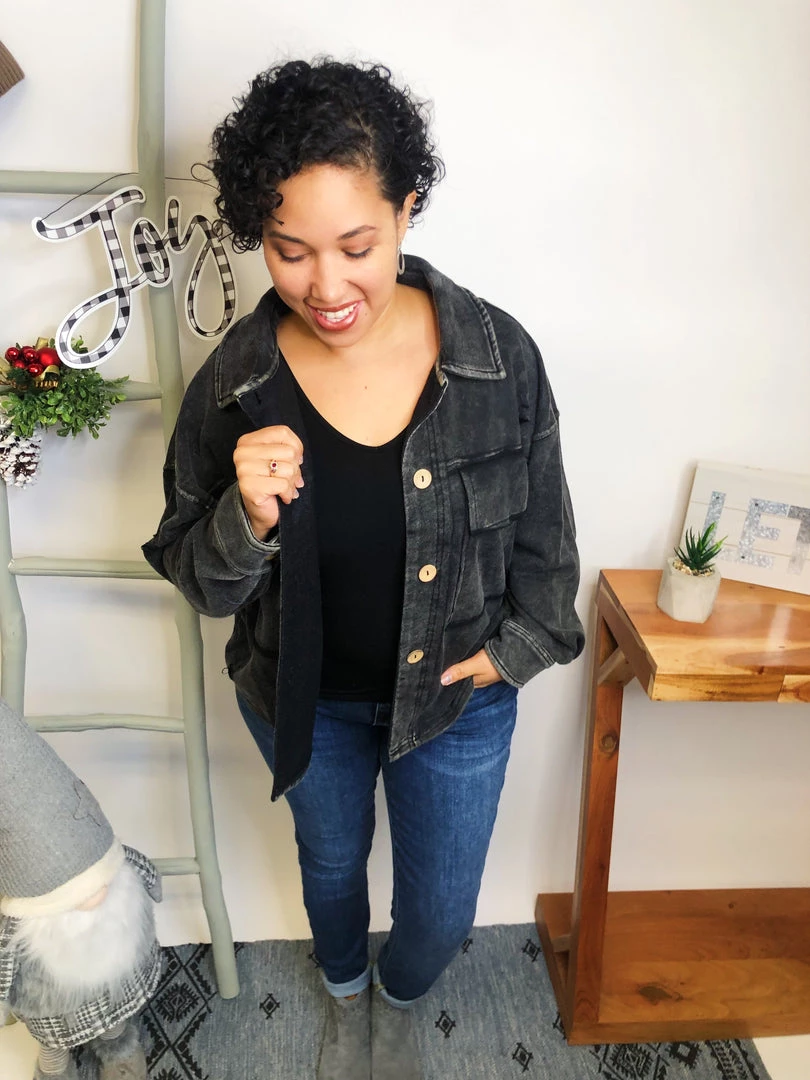 This beautiful shacket has a washed button front featuring long sleeves, loose fit, cropped silhouette and large pockets. It goes really well with any kind of bottom! And the fabric in this shacket is very soft and warm! You’re gonna love it!Β