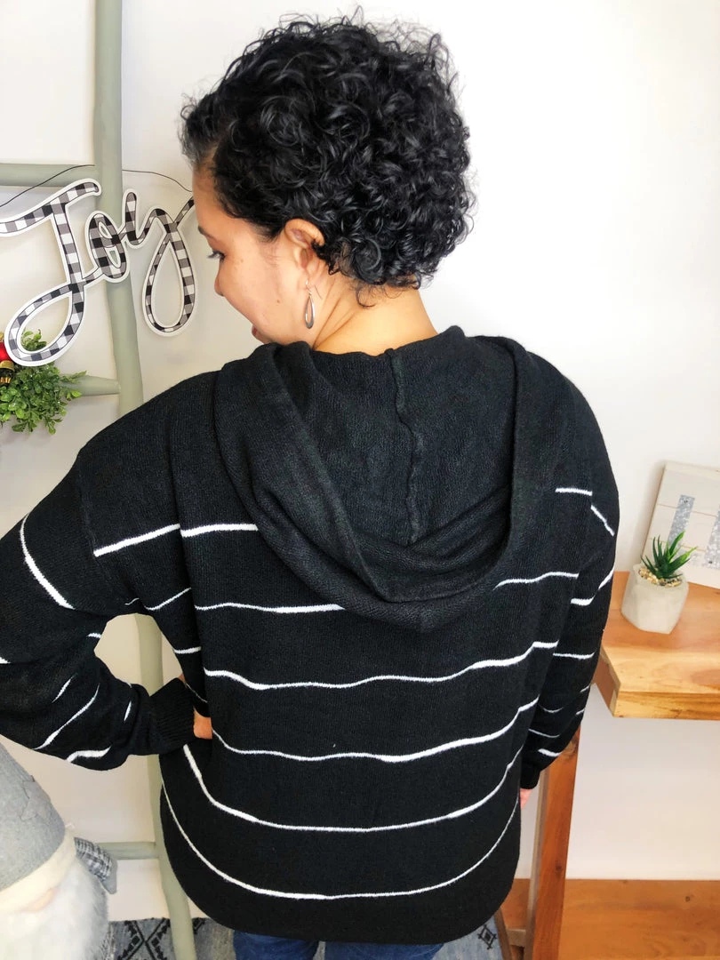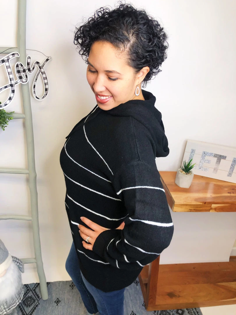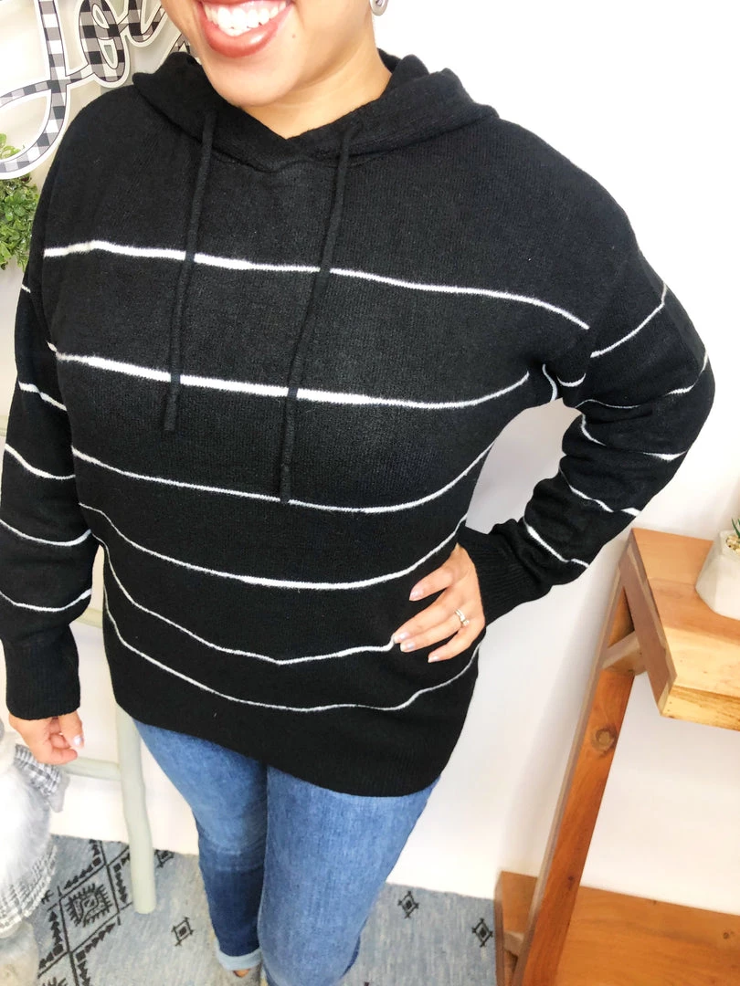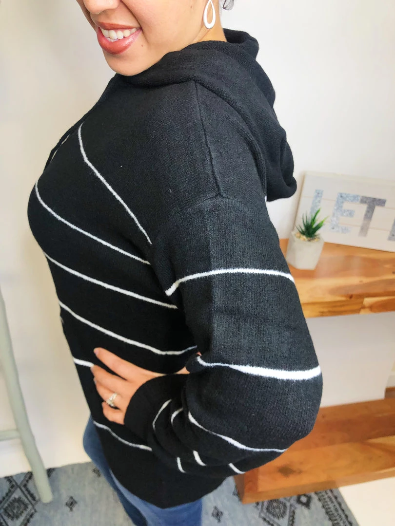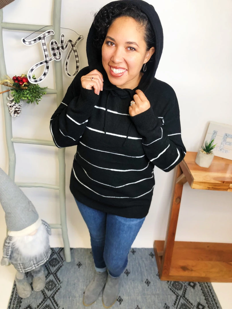 This hoodie is so beautiful!!! It is aΒ long sleeve striped knit sweater with a hood featuring adjustable drawstrings!!! And the fabric in this hoodie is very lightweight and soft! You’re gonna love owning this!!