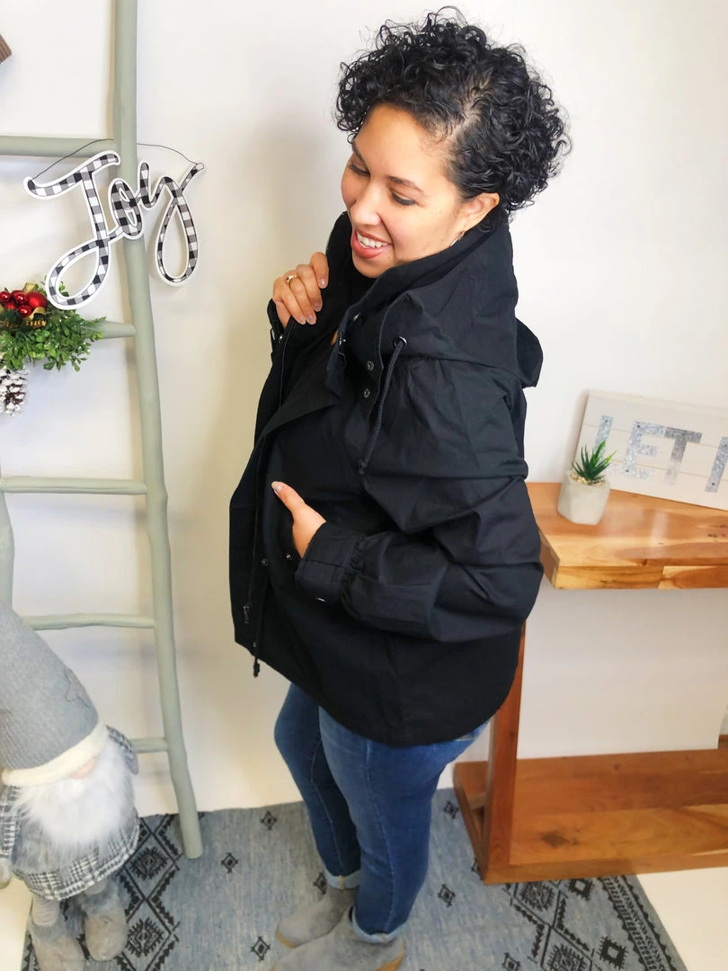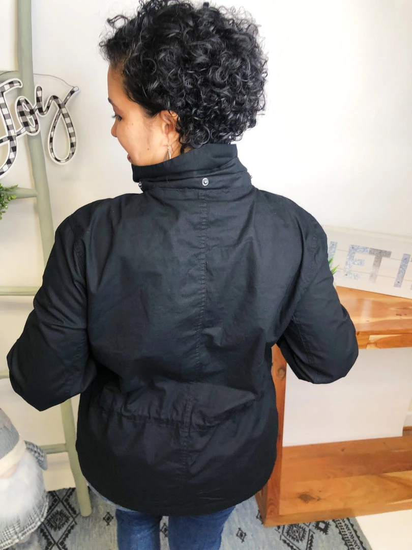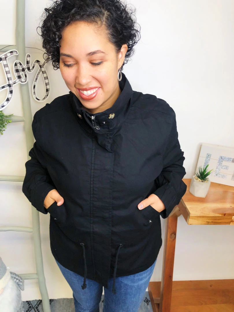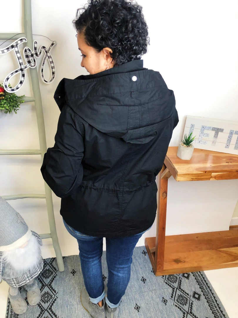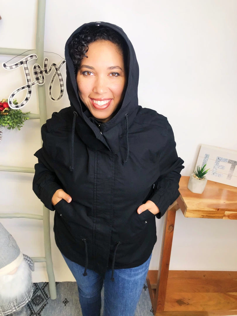 This is a GORGEOUS utility jacket!!! It is aΒ long sleeve solid woven jacket with a zippered front featuring an adjustable drawstring waist, removable hoodie and side pockets!!! This is just gonna look fabulous with your outfit!!! And the fabric in this jacket is aΒ medium weight woven material! You’re gonna love owning this!Β
