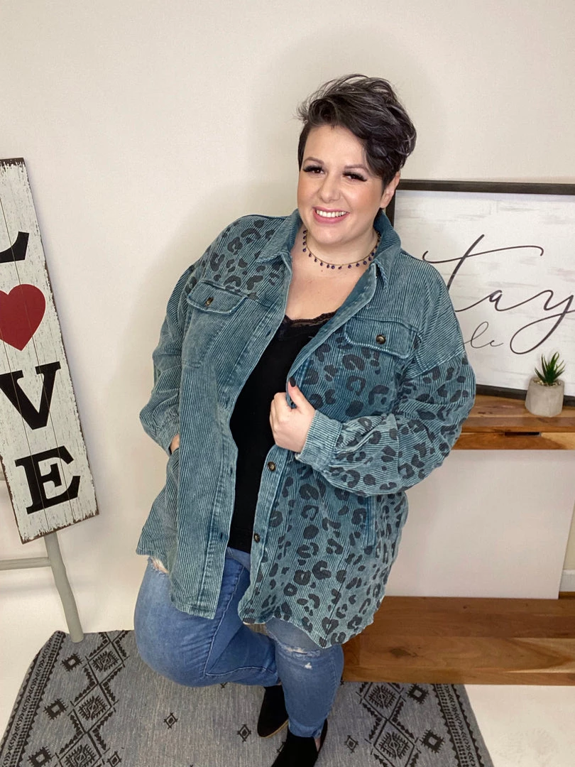 This shacket is GORGEOUS!! It has Β long sleeves, cheetah print woven with a button down front featuring a contrast solid body and pockets!!! The material is a medium weight woven corduroy!!! You’re gonna love it!!!