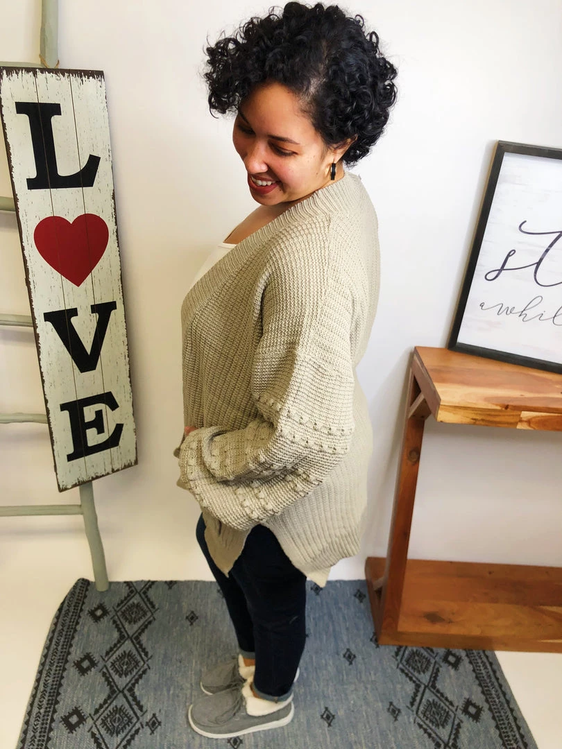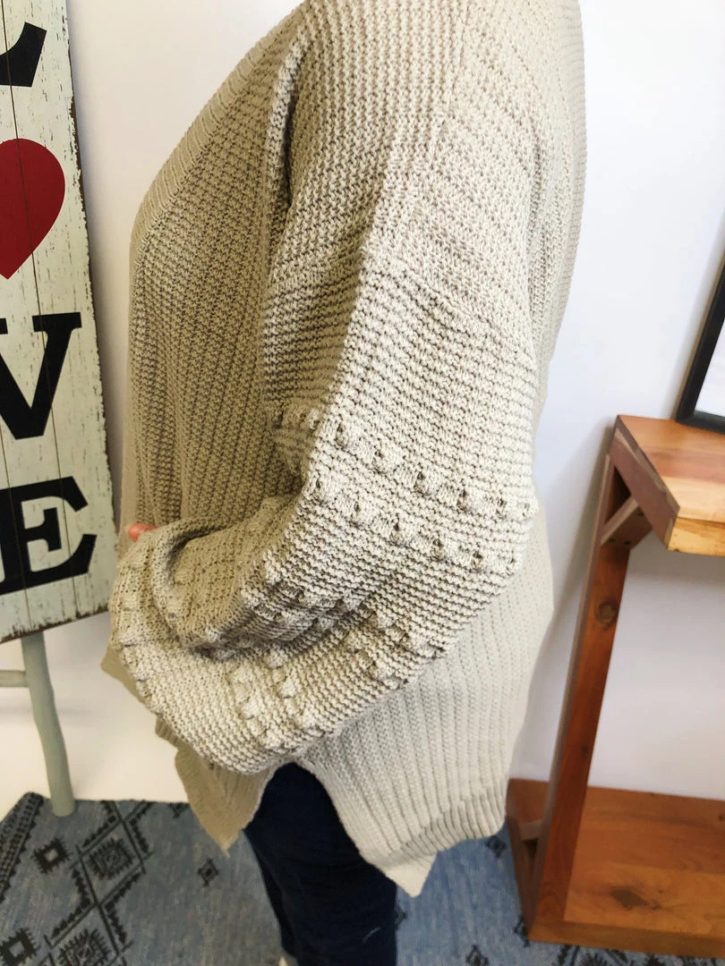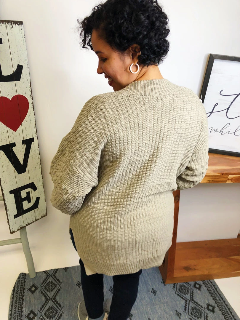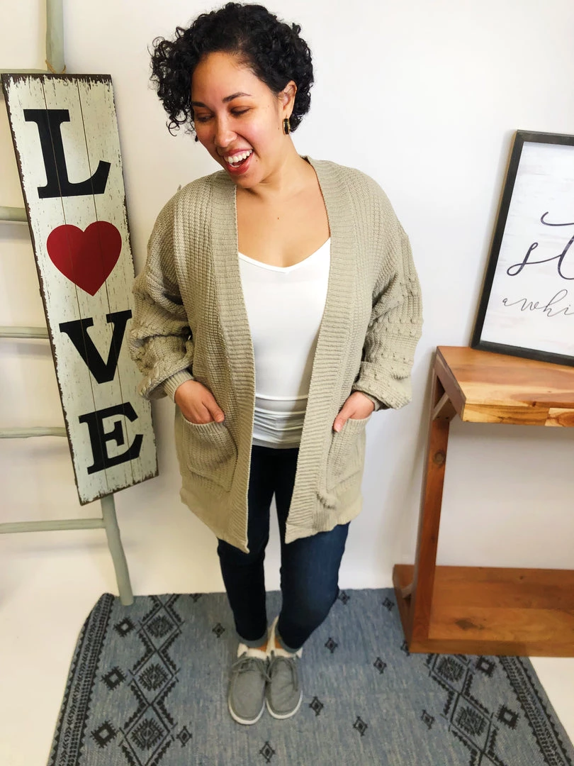 This sweater knit cardigan is so cute!! It has an open front featuring side slits and front pockets. The material is so soft and warm! You can match this cardigan with leggings or your favorite jeans and you will have an amazing outfit!!Β