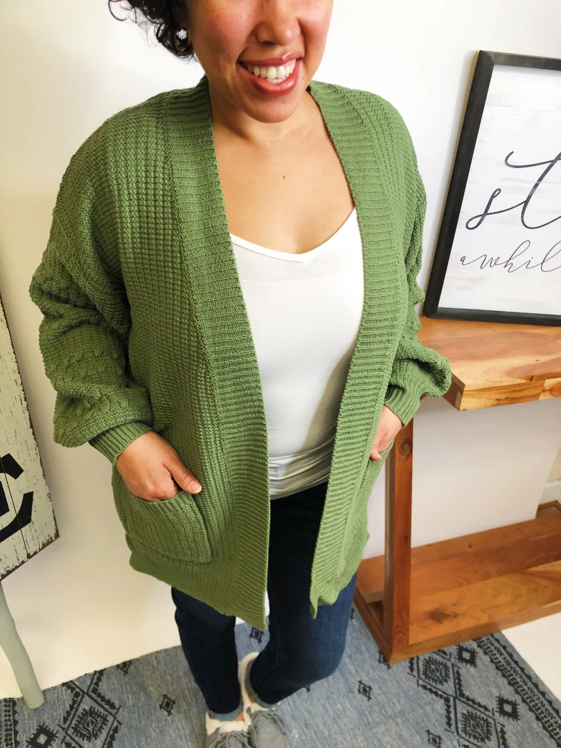 This sweater knit cardigan is so cute!! It has an open front featuring side slits and front pockets. The material is so soft and warm! You can match this cardigan with leggings or your favorite jeans and you will have an amazing outfit!!Β