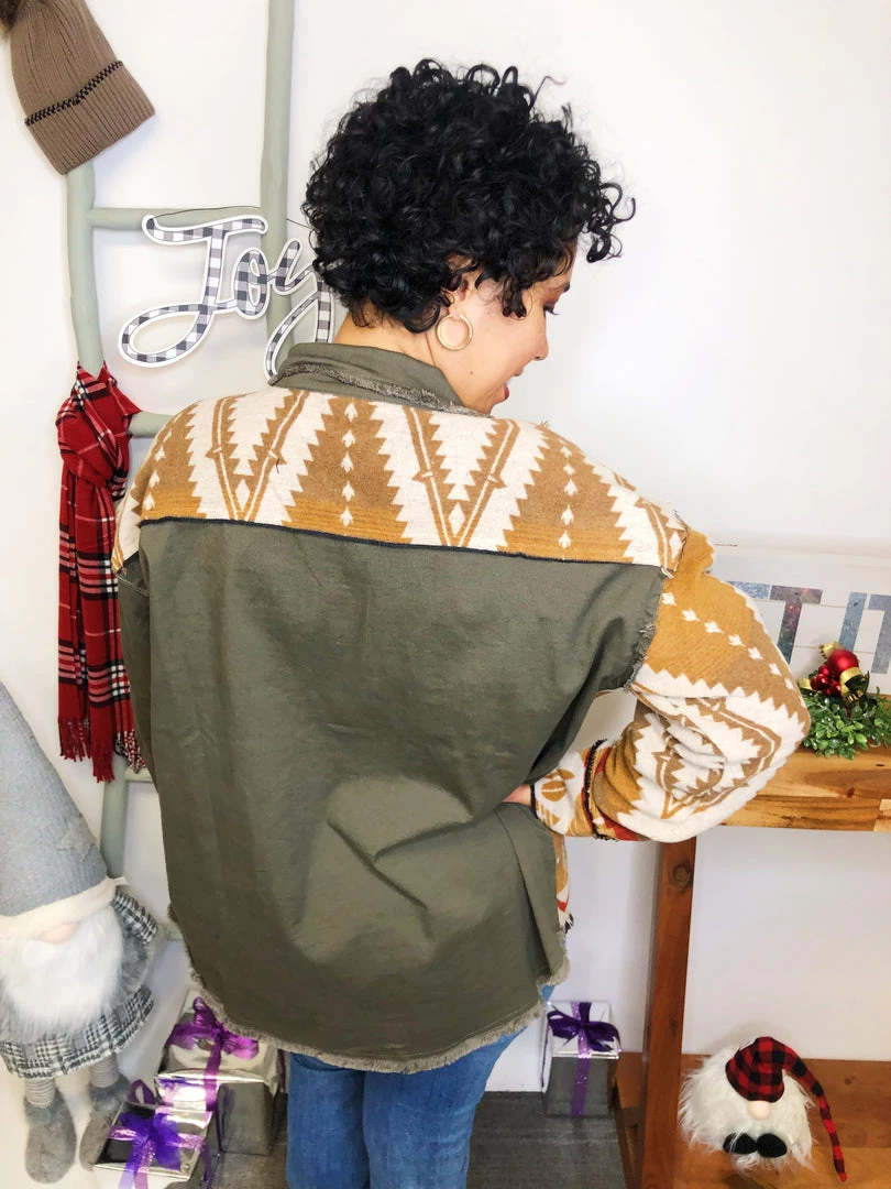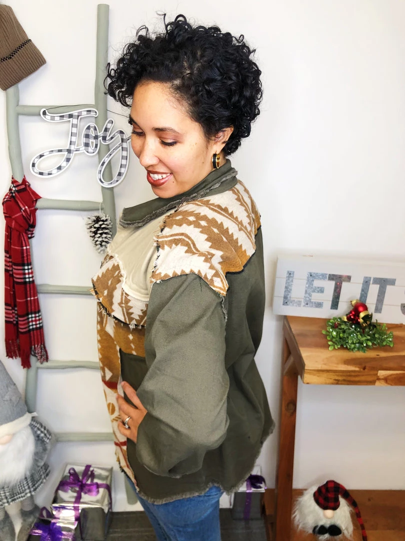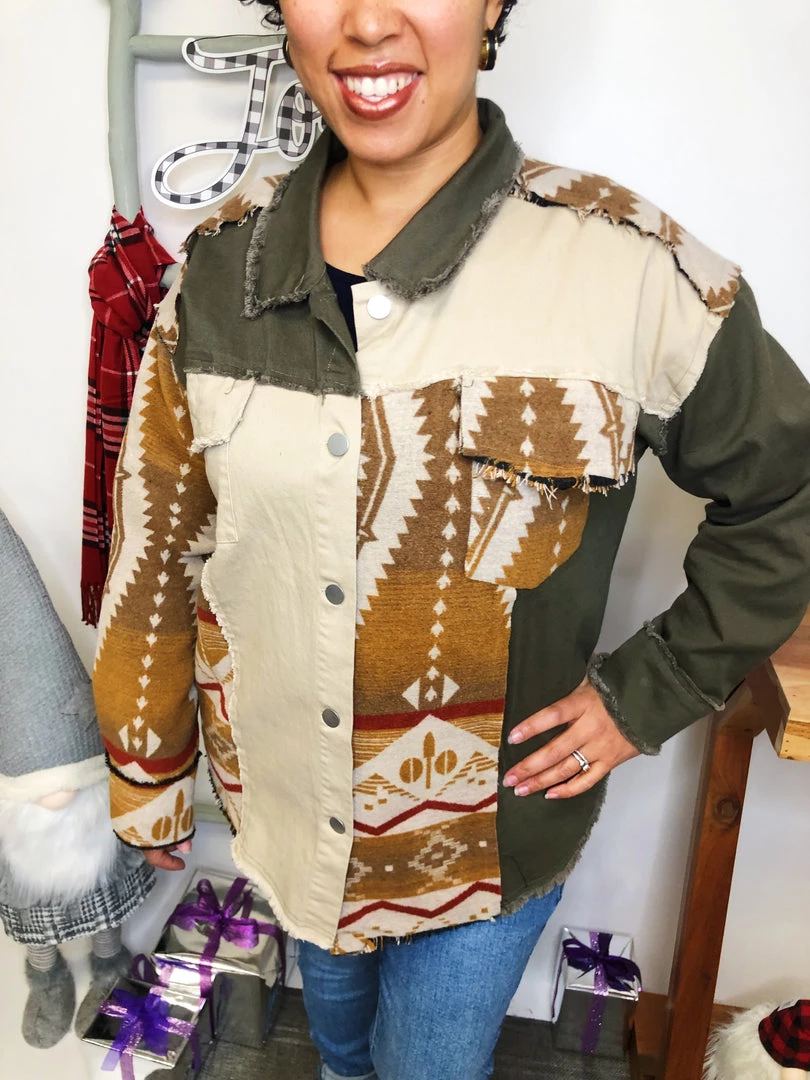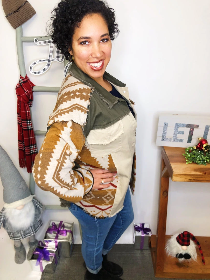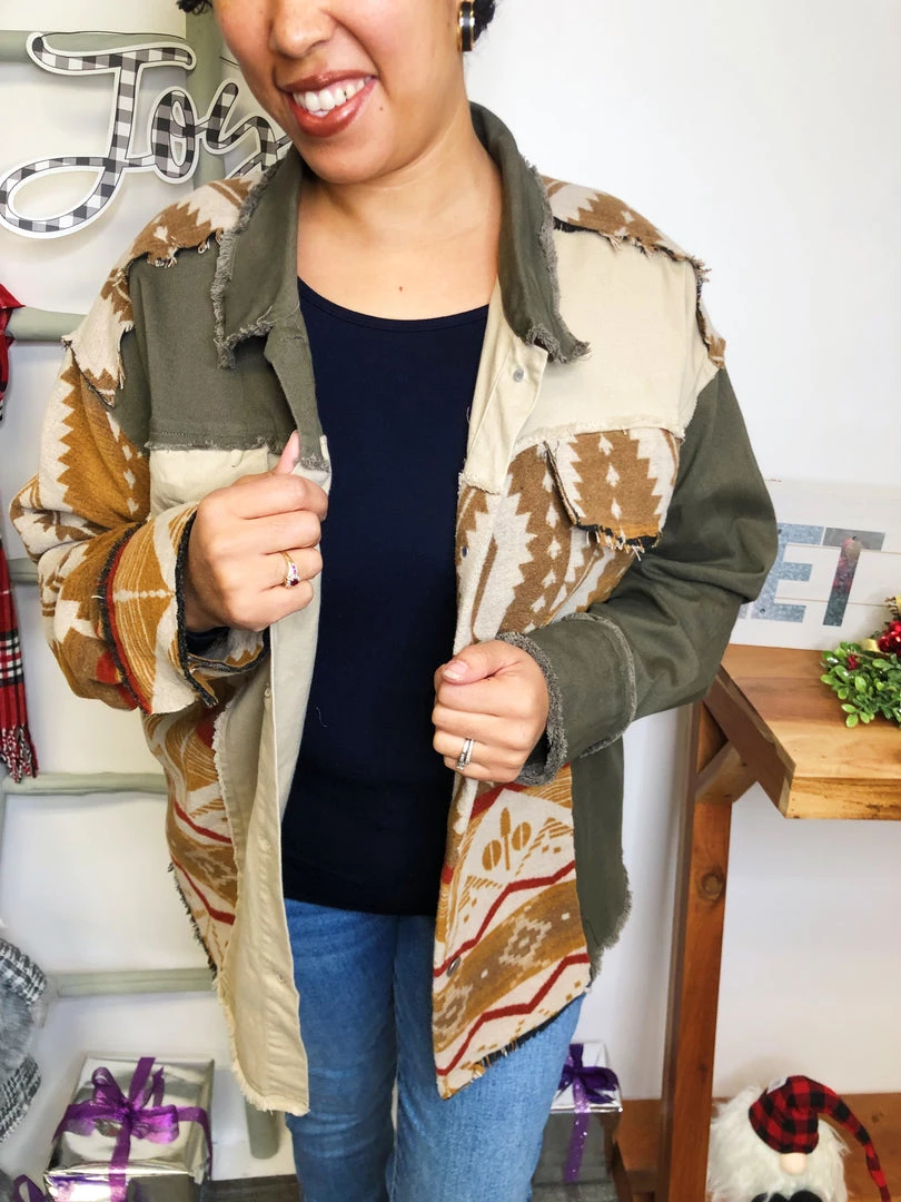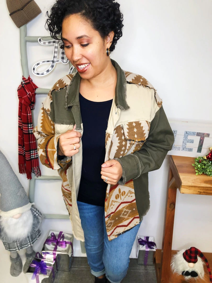 This is a GORGEOUS shacket! It has such a beautiful brown, olive and beige pattern and rich material! The colors in this shacket are perfectly matched and the fabric is extremely soft and lightweight! It has great pocketsΒ in the front! You’re gonna get crazy about this shacket!Β