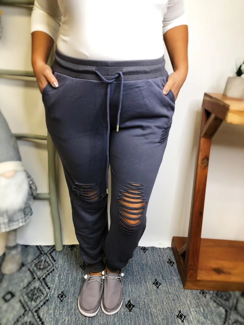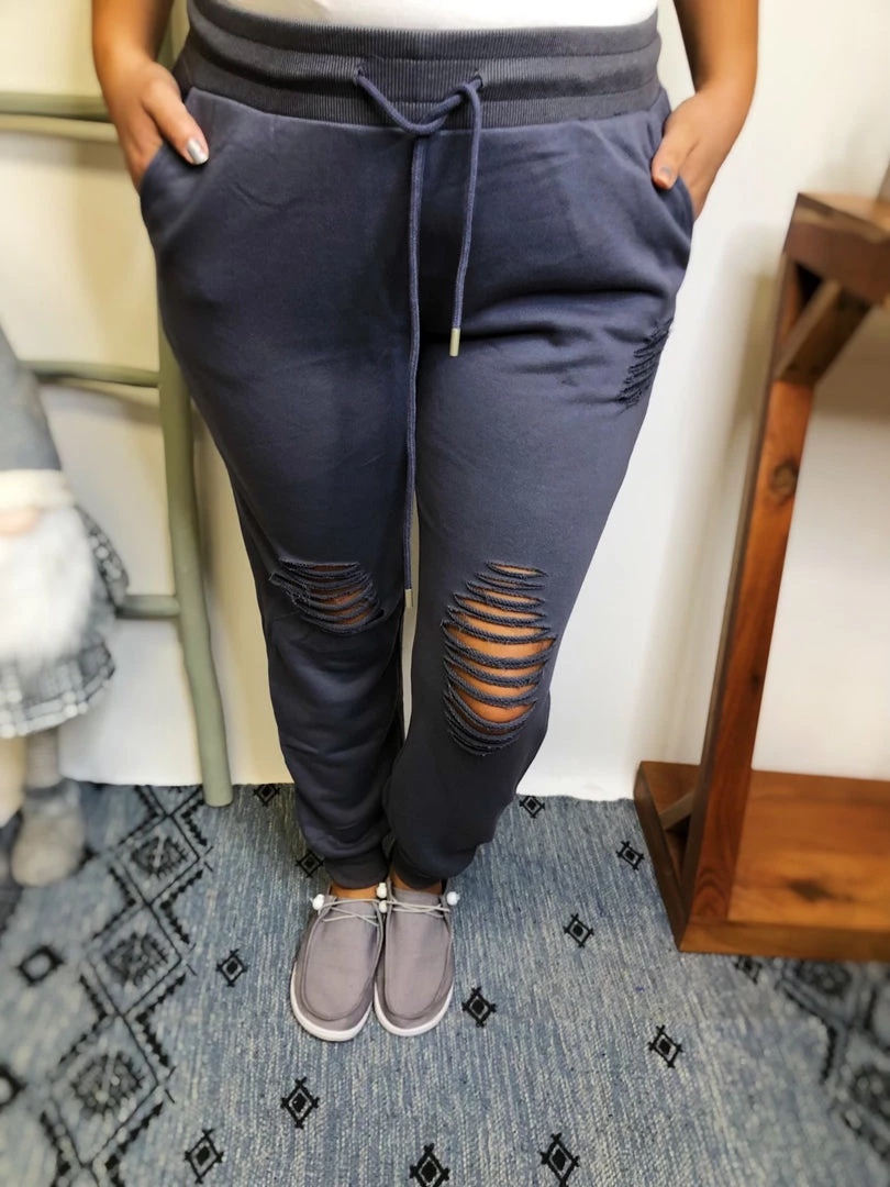 These incredible joggers in Hot Pink, are just amazing! It feature some distressed slashes on them on the knees and thighs. These over sized joggers are really soft and comfortable, you will never want to take them off! The drawstring on these allows to adjust these for the perfect fit. Pair these with your favorite comfy top for an amazing outfit!