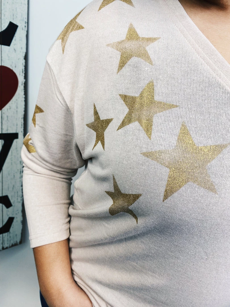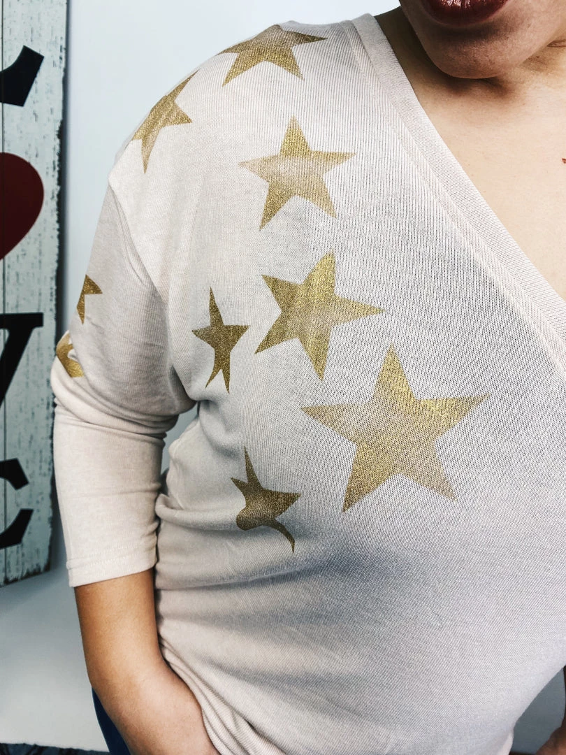 This GORGEOUS Vocal tops is amazing!! It has V-neck and features stars on the front making this top even more beautiful!! The material is so comfortable and soft!! This top is the perfectΒ balance of edgy and sophistication!! You’re gonna love this top!!