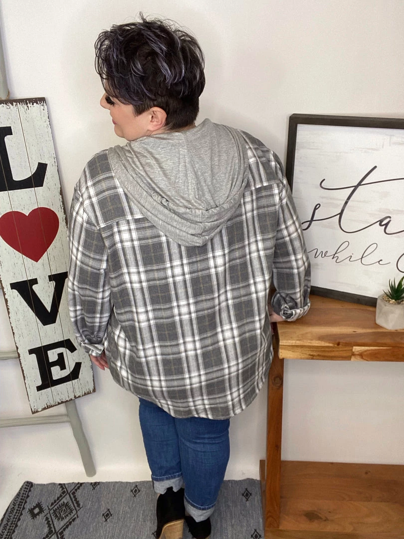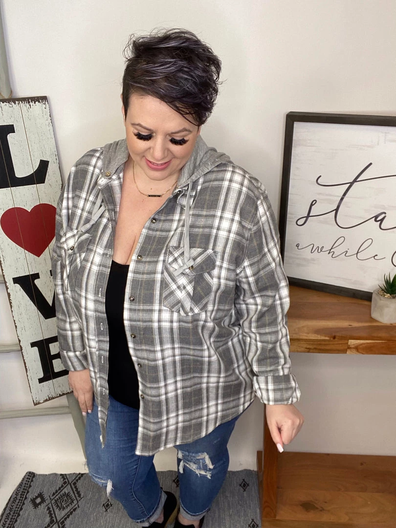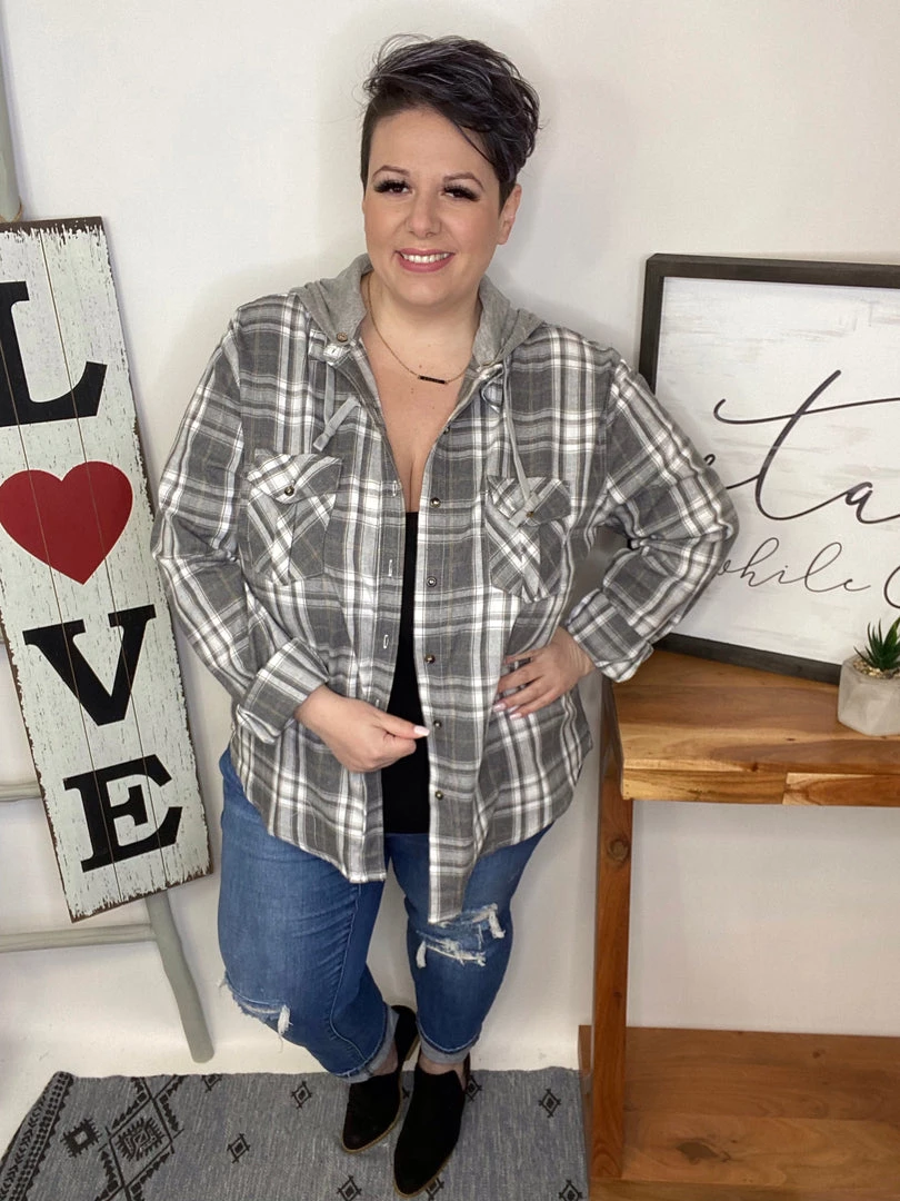 This plaid hoodie is SO beautiful!!! It’s the kind of piece that adds that special touchΒ missing in any outfit! It has buttons up and the hoodie is removable! And the material in this hoodie is really soft and lightweight! You’re gonna love it!