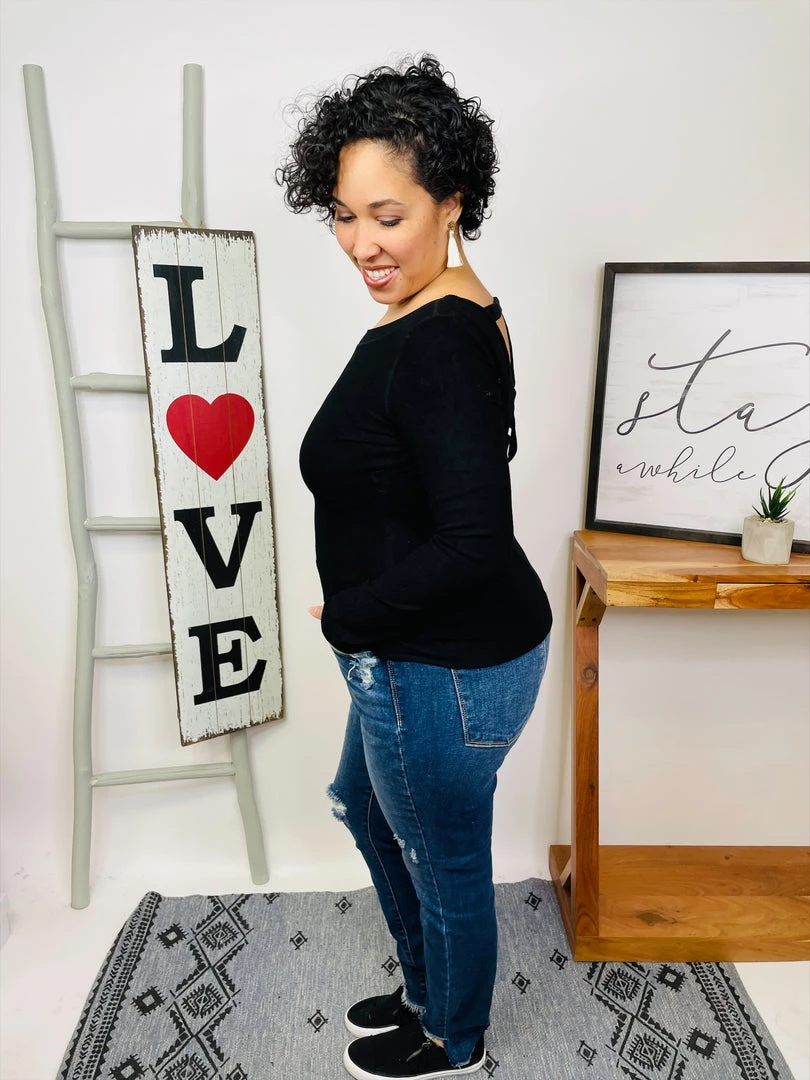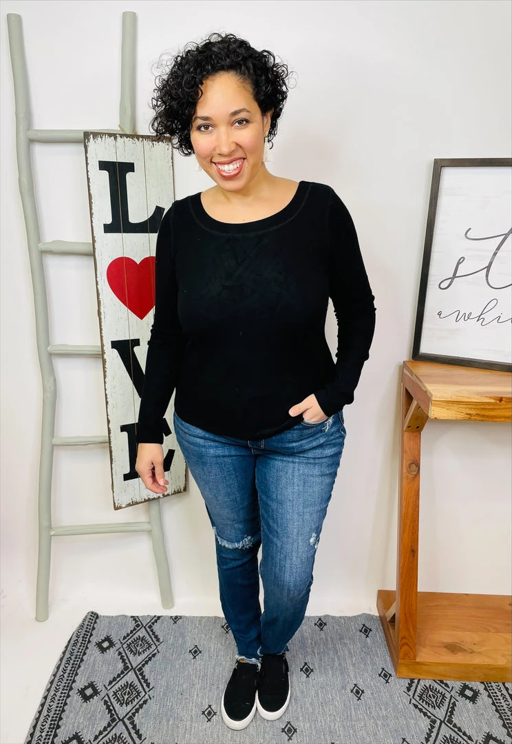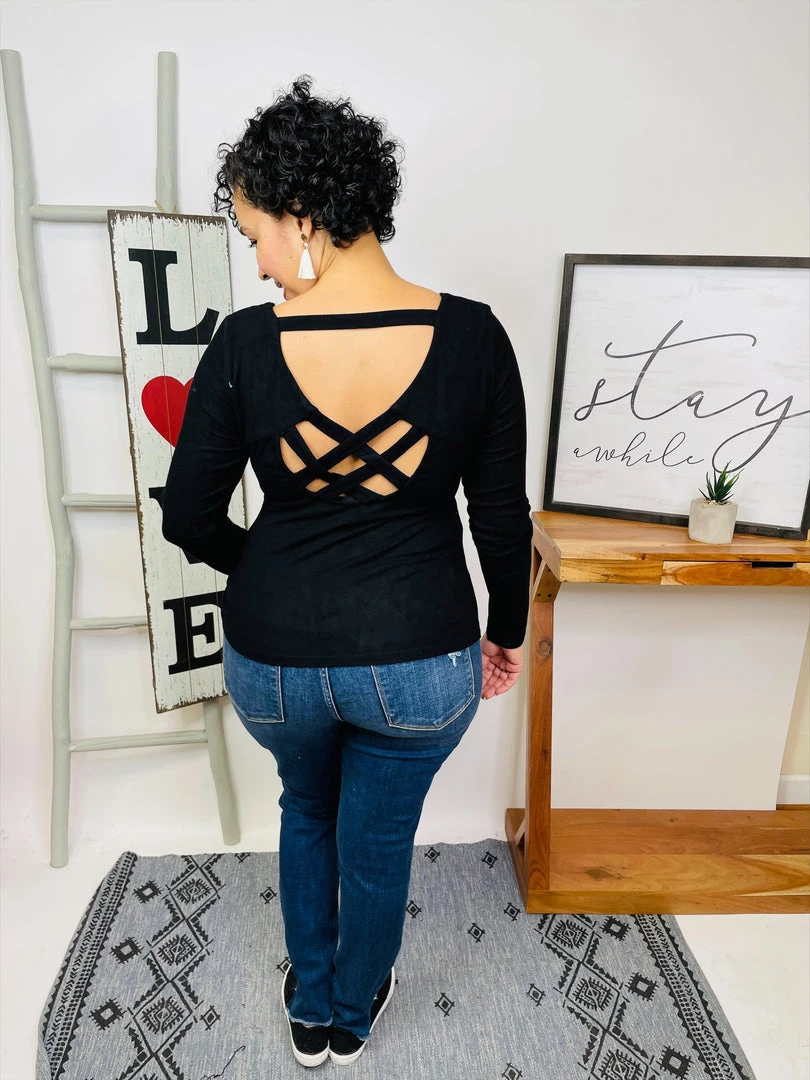 This top is INCREDIBLE soft!! It’s a long sleeve solid knit top with a round neck featuring an open criss cross back and a true-to-size fit! And the fabric is a soft knit material!! You’re definitely gonna love owning this top!