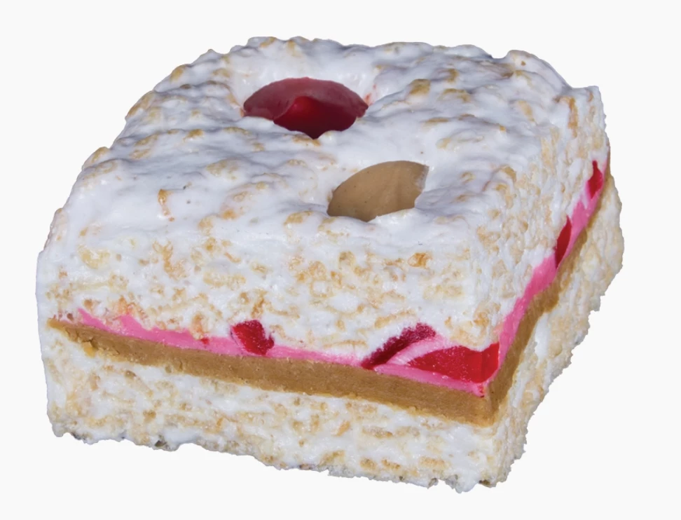 Gourmet marshmallow rice CRISPYCAKE with Peanut Butter and Jelly found in the middle of this unique and fun treat. Easily eaten, with no dripping jelly and no stickiness, just soft and gooey marshmallows and crispies that are never hard and sticky.Β