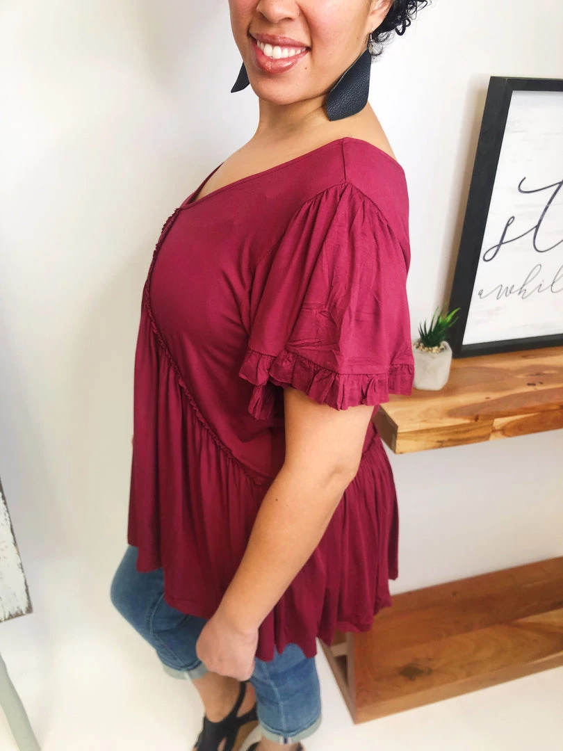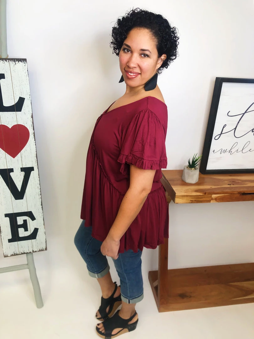 This top is AMAZING!Β It’s bellΒ sleeves with ruffle jersey top! This is gonna make any outfit of your looking fantastic, girl! You’re gonna love it!!!