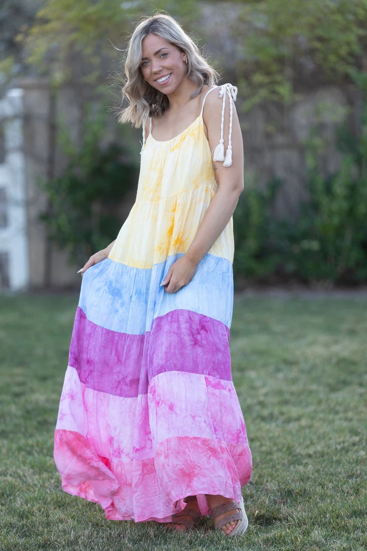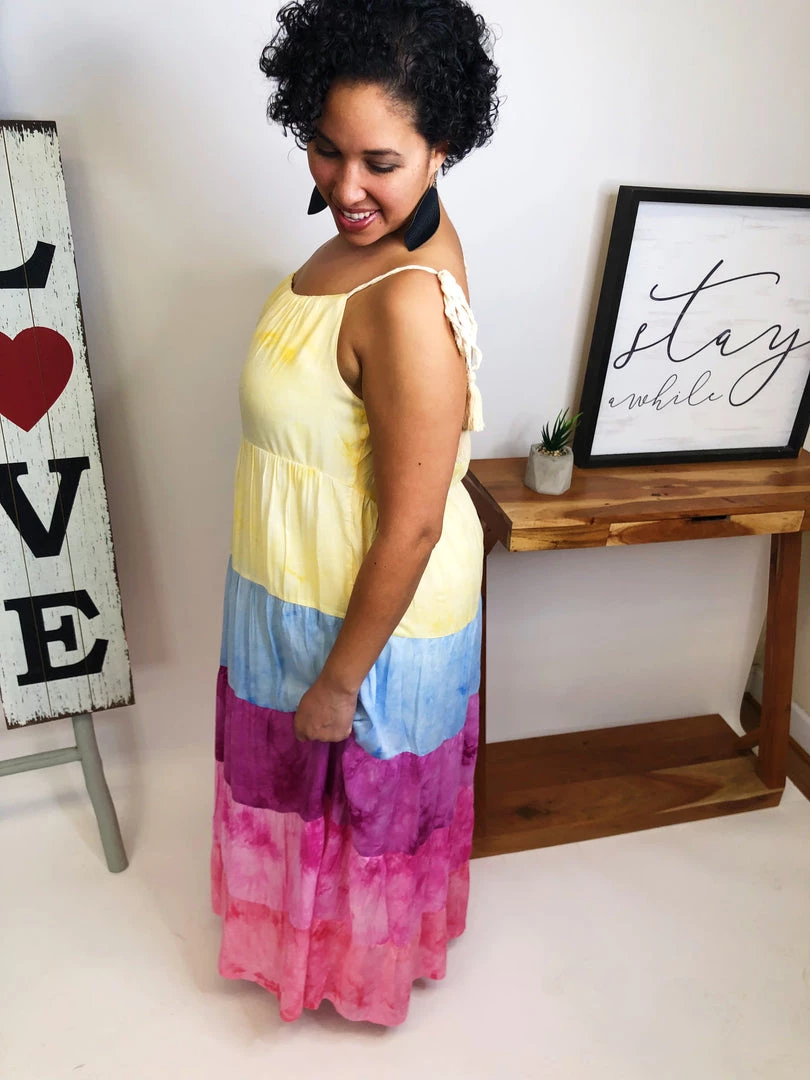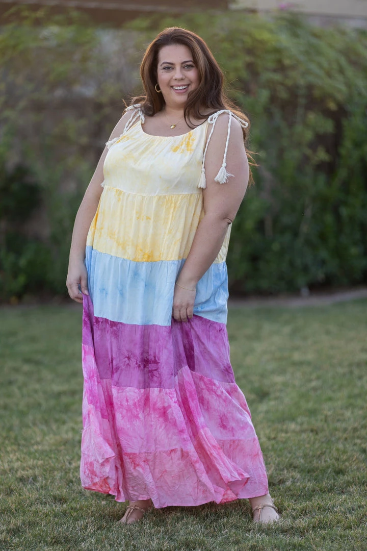 This dress is absolutely GORGEOUS!!!Β A sleeveless tie-dye knit dress with a round neck featuring a loose fit! The fabric is a lightweight rayon knit!!! You’re gonna look amazing wearing this, girl!