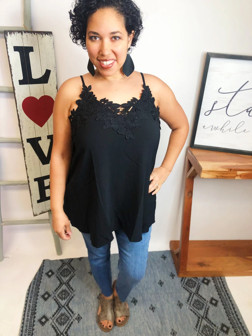 This top is BEAUTIFUL!!! It is a crochet lace, solid spaghetti straps tank top featuring sleeveless, v neckline and adjustable spaghetti straps! This is seriously going to make your outfit looking amazing! You’re gonna love it!