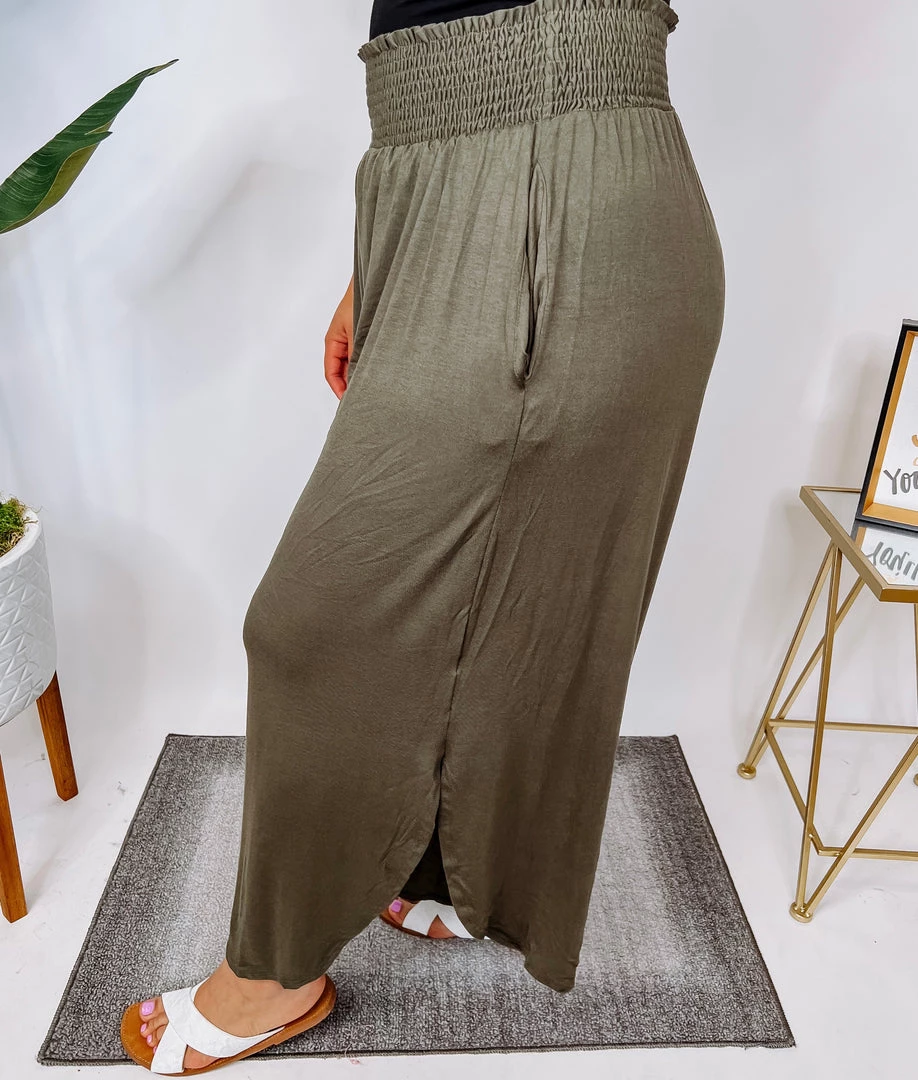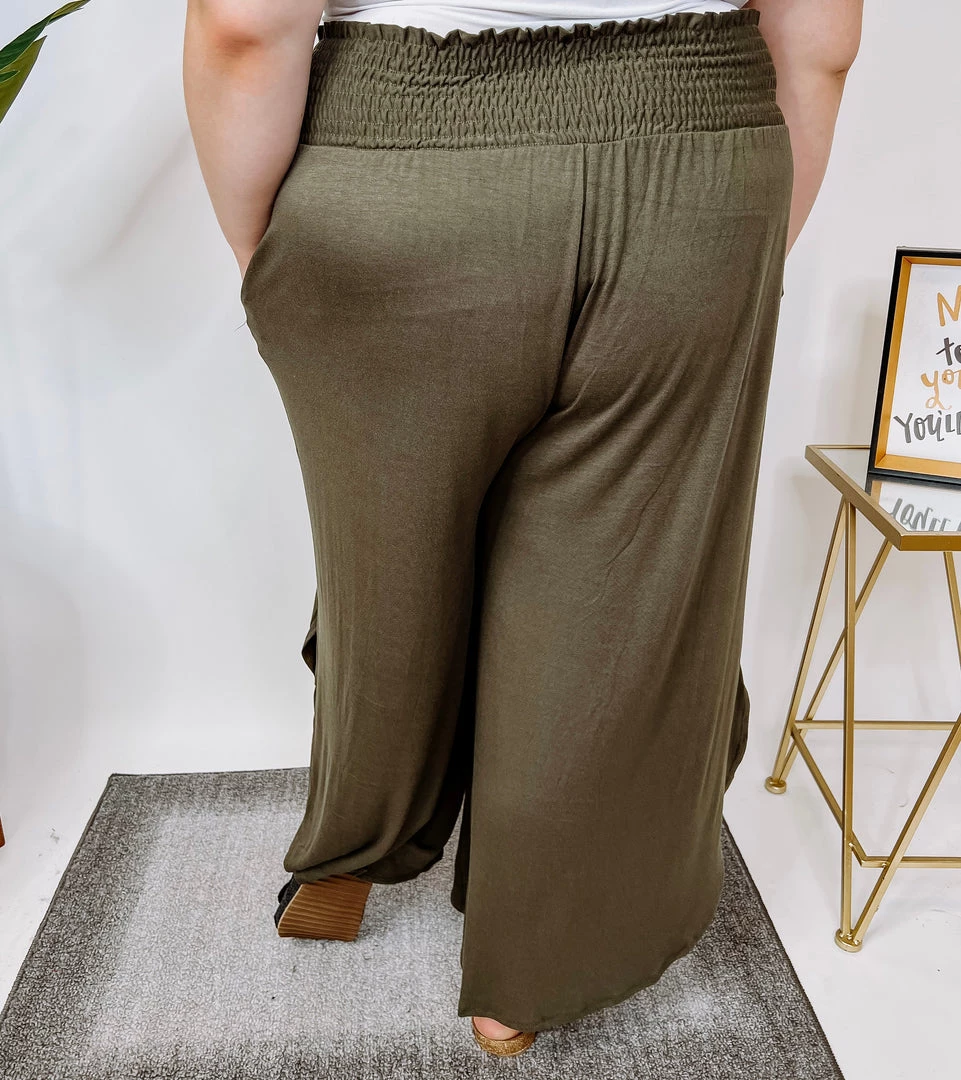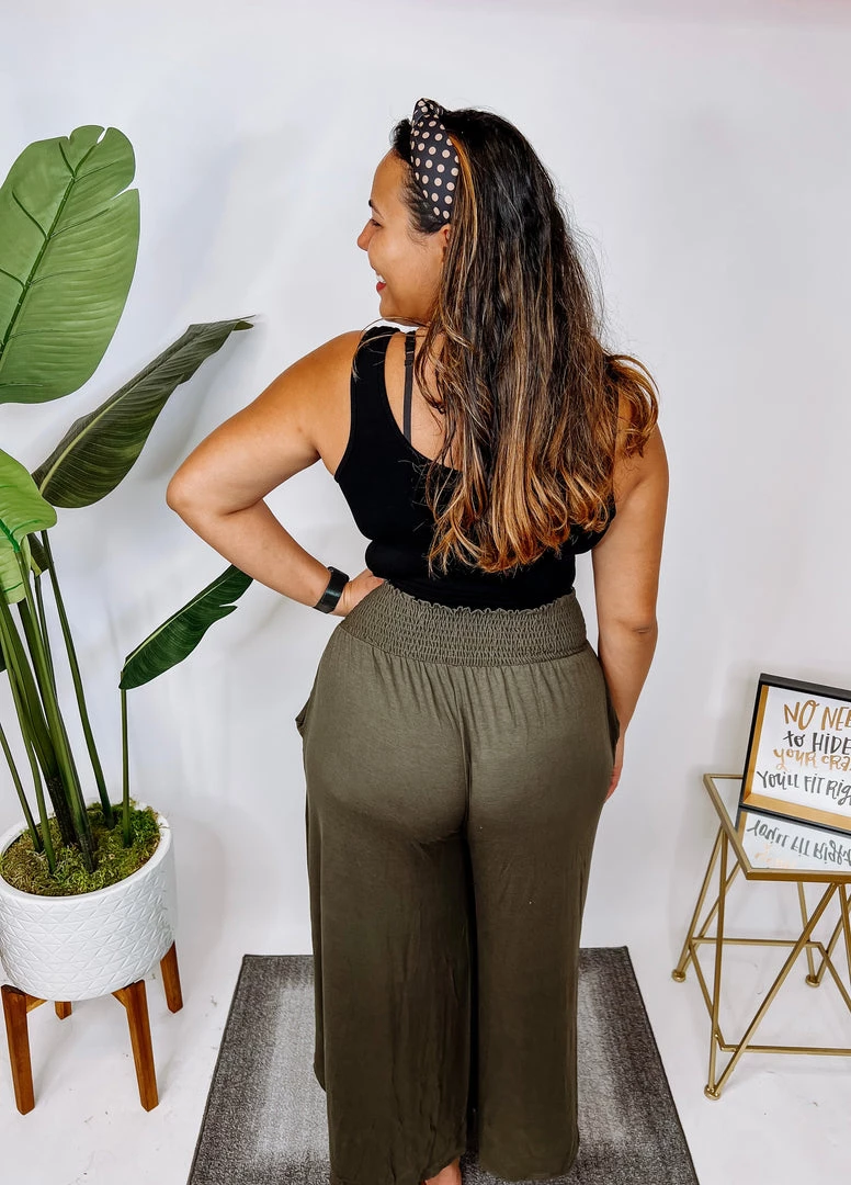 These pants are SO beautiful! They’re a solid wide leg rayon spandex pants with waist band and trim details!!! These are definitely a must have piece in your closet, girl! You’re gonna love it!Β