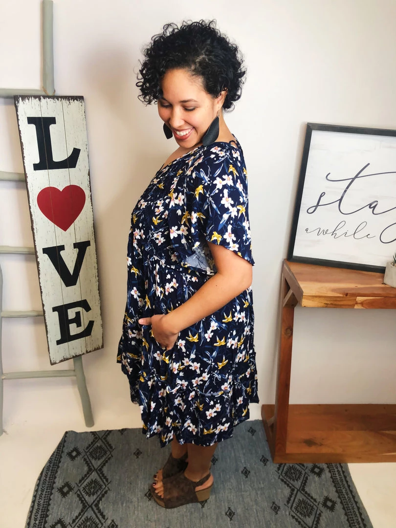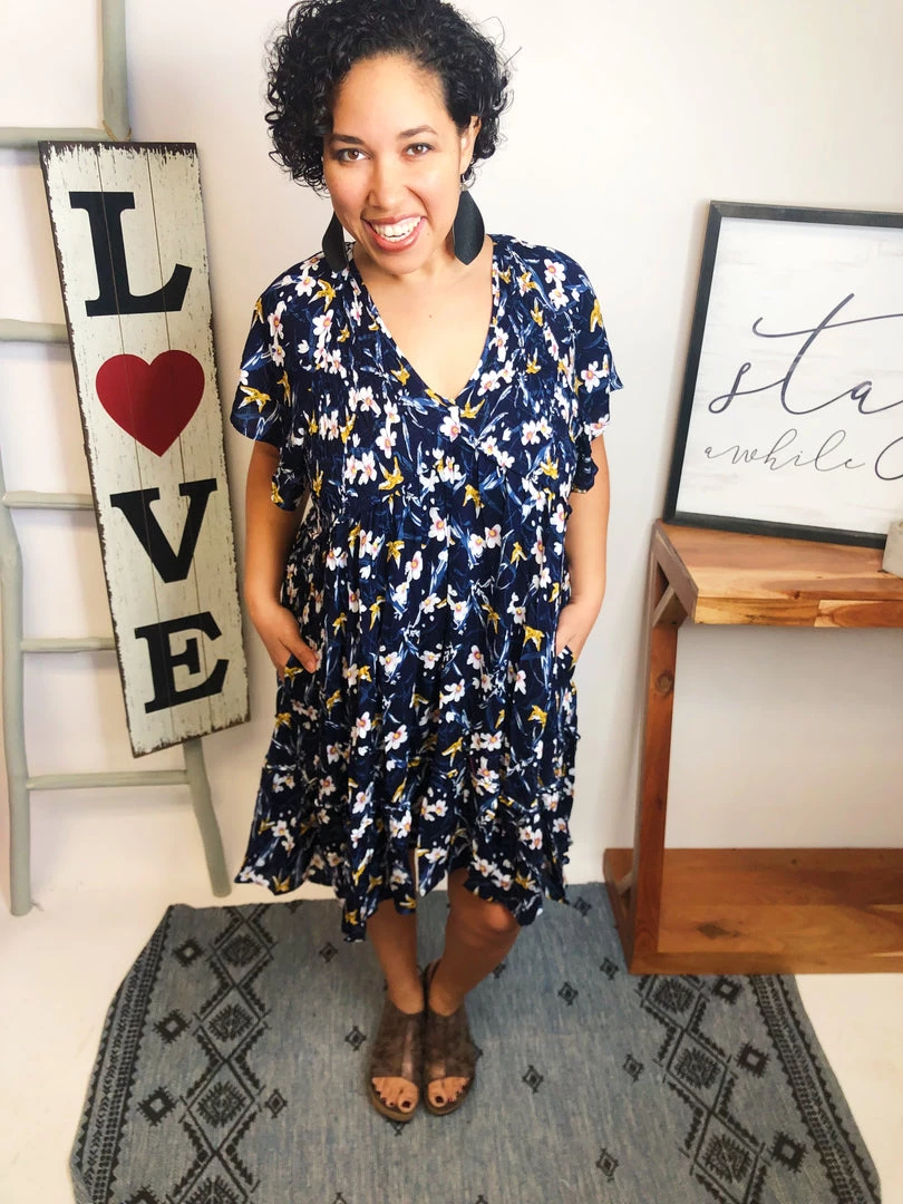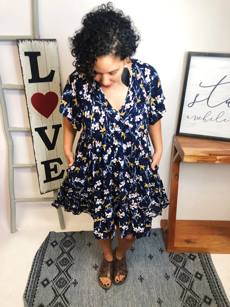 This dress is so beautiful! It is a floral print short sleeve v neck flared dress! Just perfect for the upcoming seasons! You gotta have this in your closet, girl! You’re gonna love it!