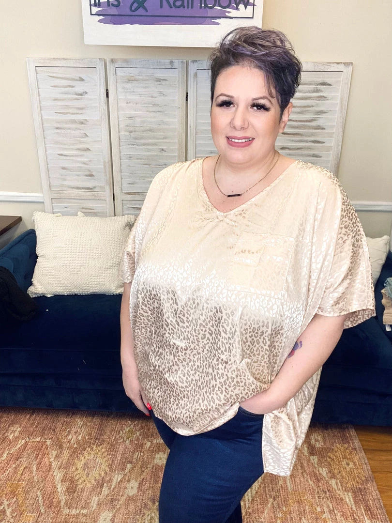 ThisΒ Leopard Satin Jacquard V Neck Oversized Poncho is GORGEOUS! This beauty is definitely gonna add a lot of style and personality to your outfit! And the fabric on this feels amazing!!! You’re gonna love it!