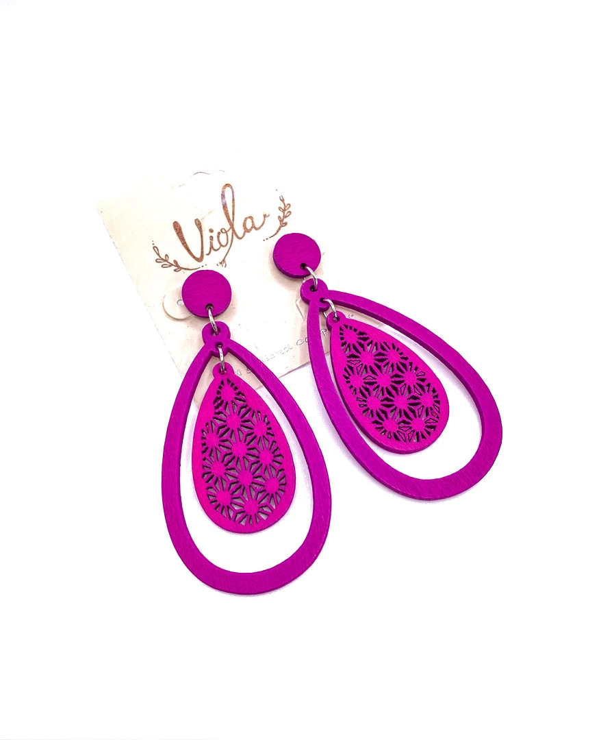 Theseย stunning earrings feature a teardrop wood in pink color. Accessorize you favorite outfit with this stunning and unique piece.