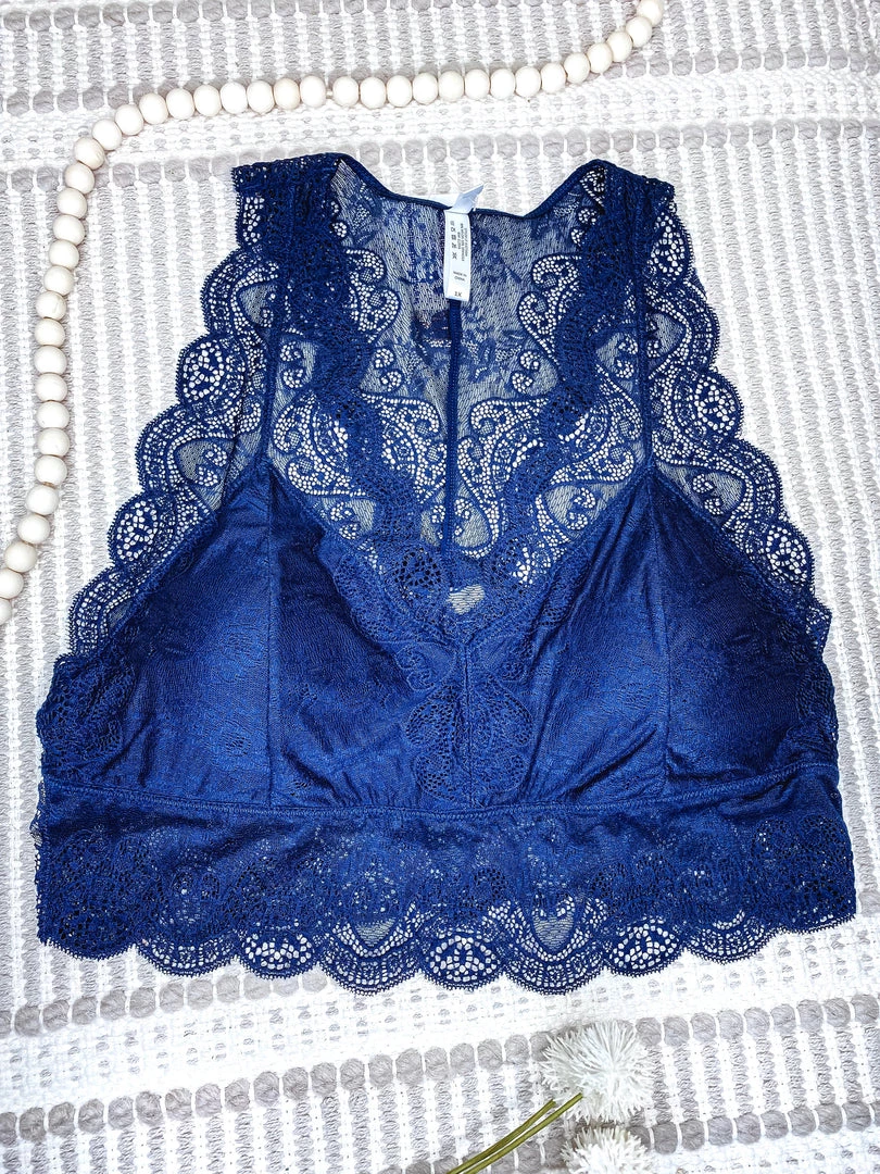 Stretch lace hourglass back bralette with removable bra pads