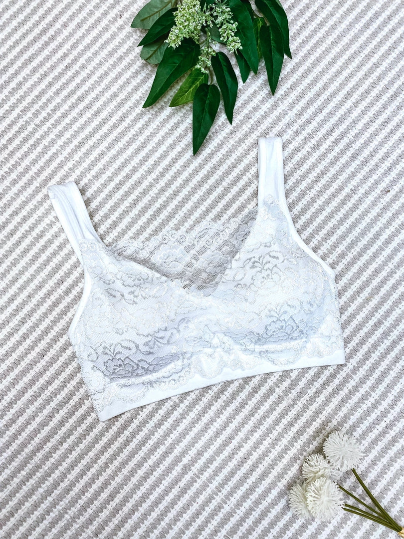 Iris & Rainbow Boutique #M399 Front Lace Bralette (White)