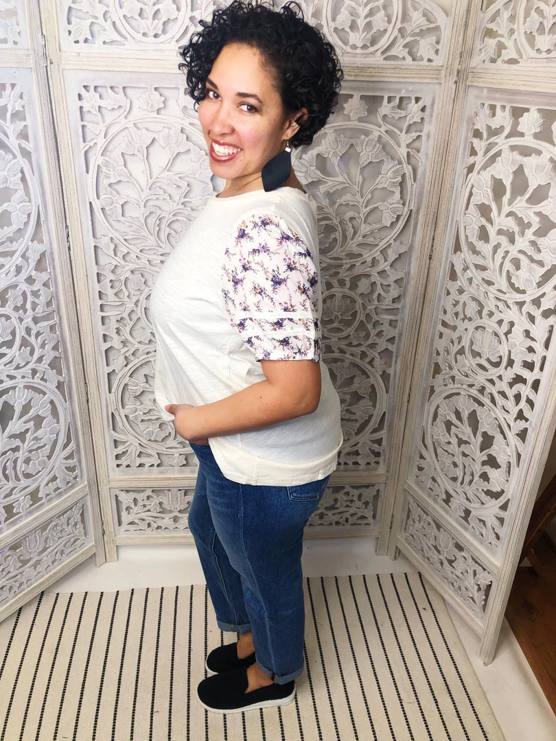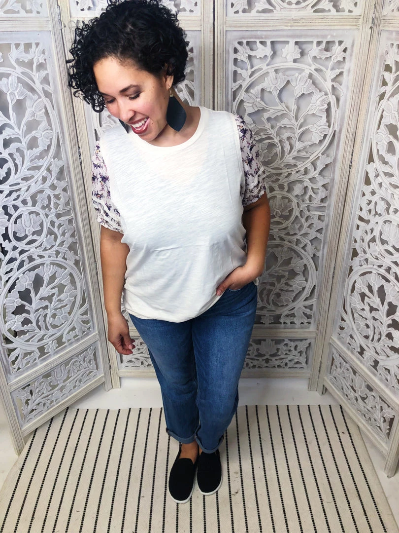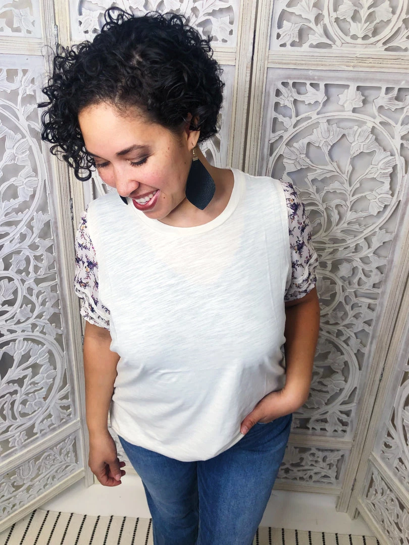 This top is SO BEAUTIFUL!!! It’s a Women’s Washed Cotton Slub Top W/ Contrast Ditzy Prints Sleeve! This cutie is gonna make your outfit looking amazing! And the fabric on this top is really soft and lightweight! You’re gonna love it!