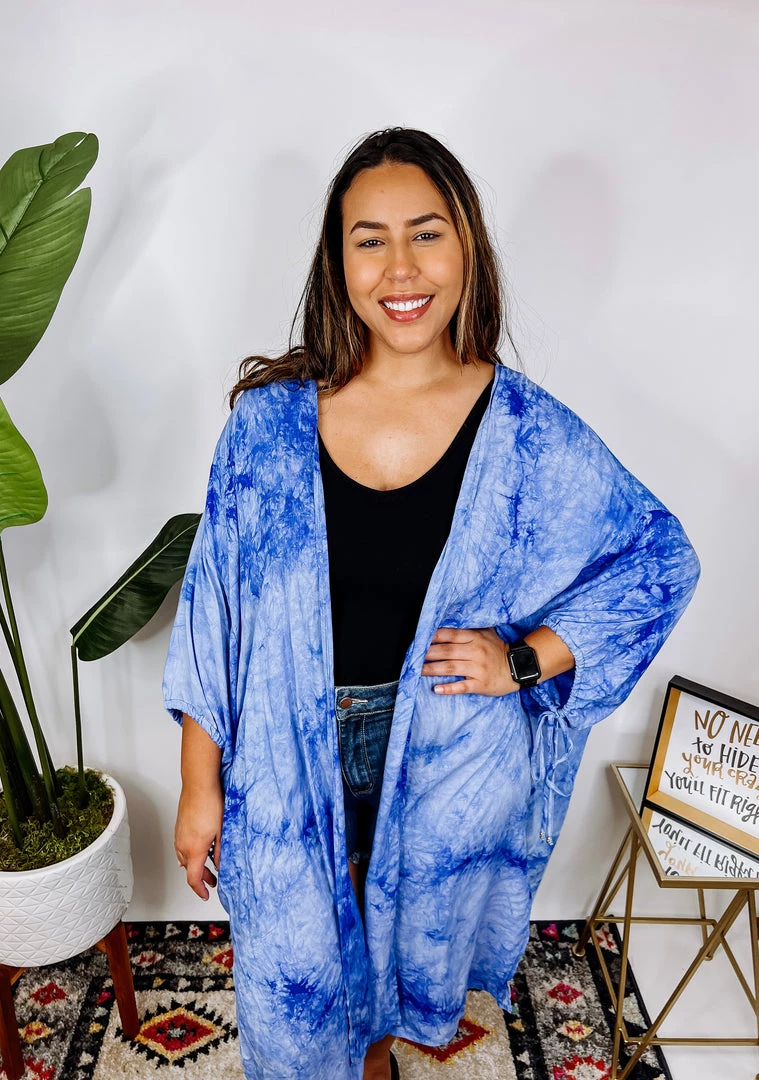 This kimono runs true to size. Iris is a true 18W/2XL and she wears a 2XL in this.