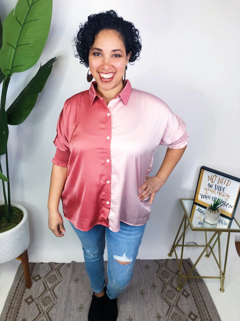 This top is GORGEOUS! Color block oversized blouse featuring Front Button-down and smocked 3/4 sleeves cuffs! This piece is going to add a lot of personality and style to your outfit! You’re gonna love it!