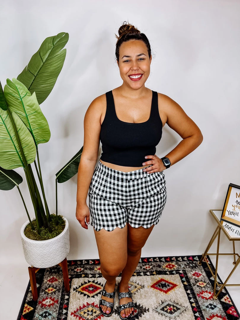 These shorts are a masterpiece, girl! Plaid print scallop shorts made in a high waisted fit with an elastic waistband and complemented with side pockets! You’re gonna love it!
