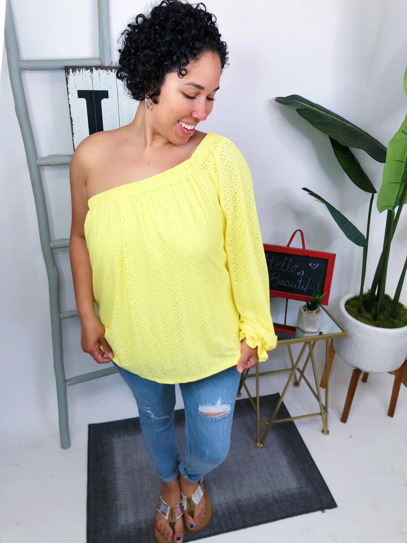 This top is GORGEOUS!Β A long sleeve solid woven top with a one shoulder body featuring a round hem and a relaxed fit. Fabric is a lightweight woven material! You’re gonna feel absolutely amazing wearing this!