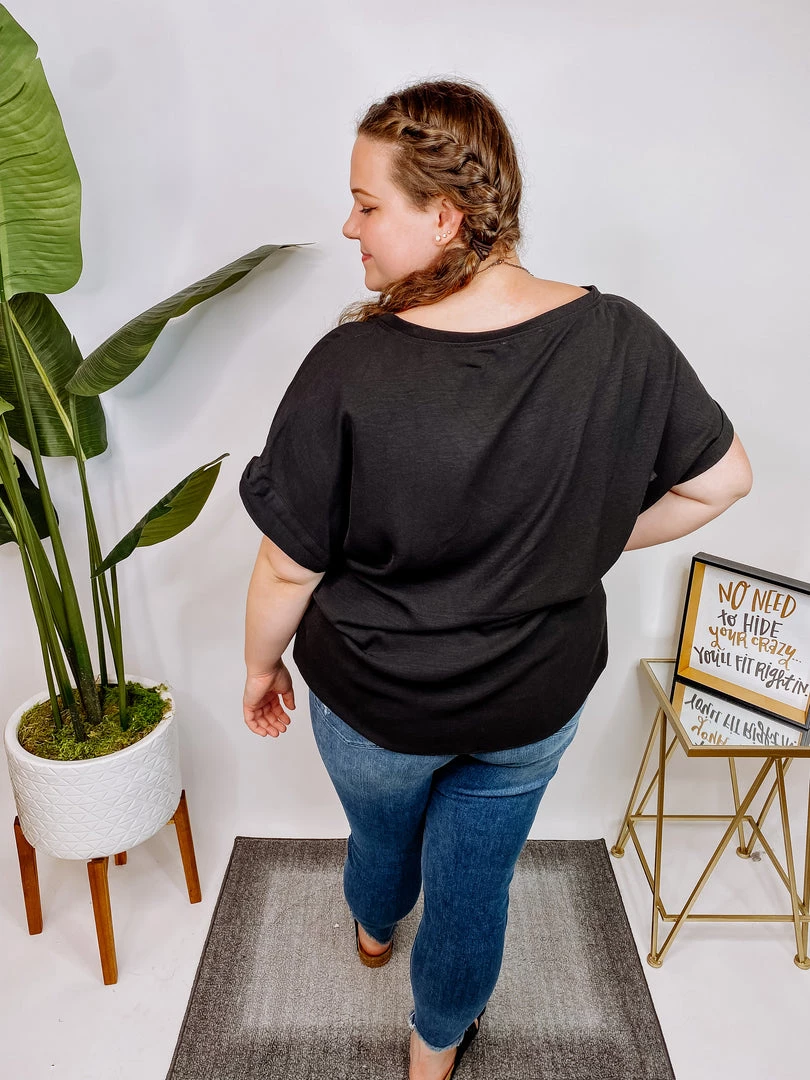 This top is so BEAUTIFUL! IT’S A solid woven top featuring a V-neck and cuffed short sleeves! This is a really elegant style that is going to add a lot of personality to your outfit! You’re gonna love it!