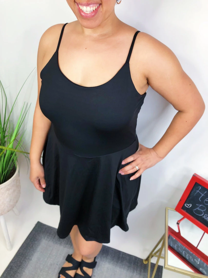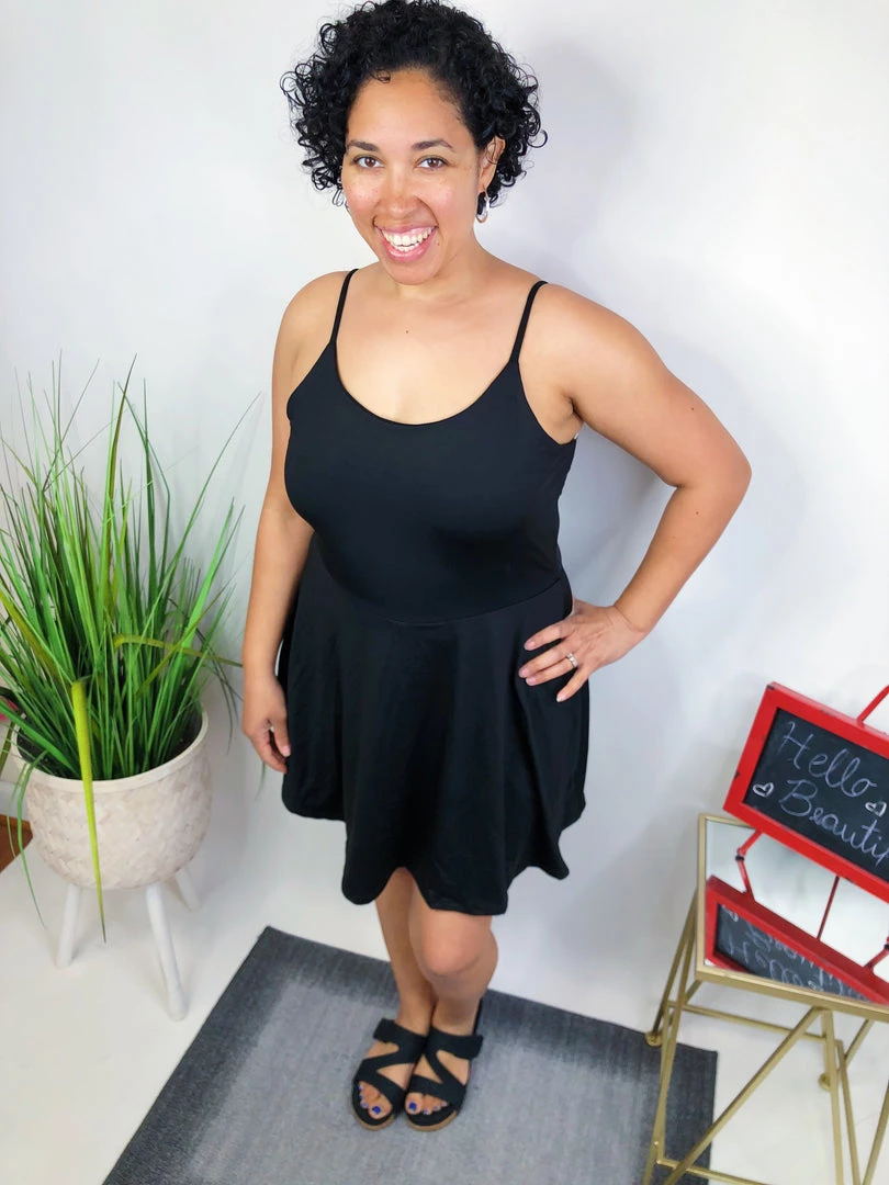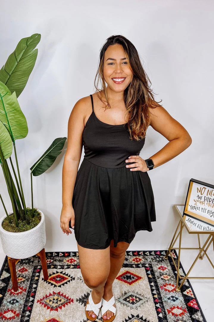 ThisΒ Β sleeveless solid knit dress with a round neck featuring adjustable straps and built-in shorts with pockets is SO cute! It has a lightweight yoga knit fabric that feels amazing on the skin! You’re gonna love it!