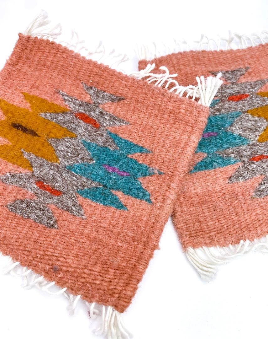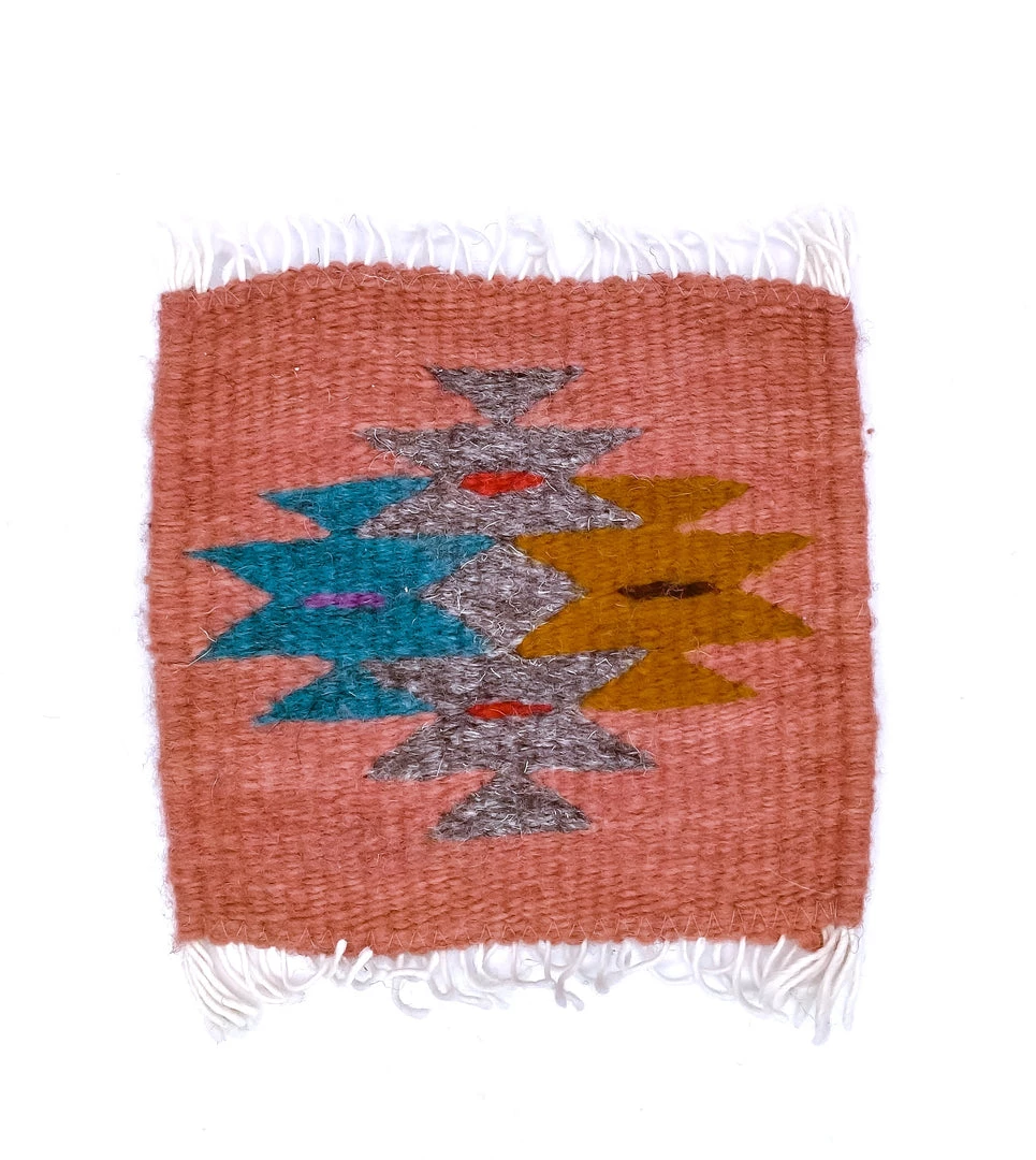 Using time honored traditions, they hand weave each rug creating a one-of-a-kind piece with designs ranging from traditional to contemporary. This 100% wool coaster was hand woven on an upright pedal loom.
