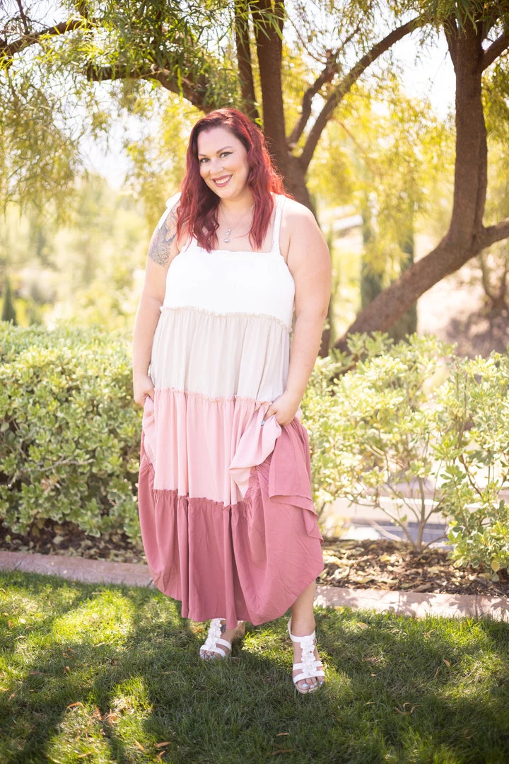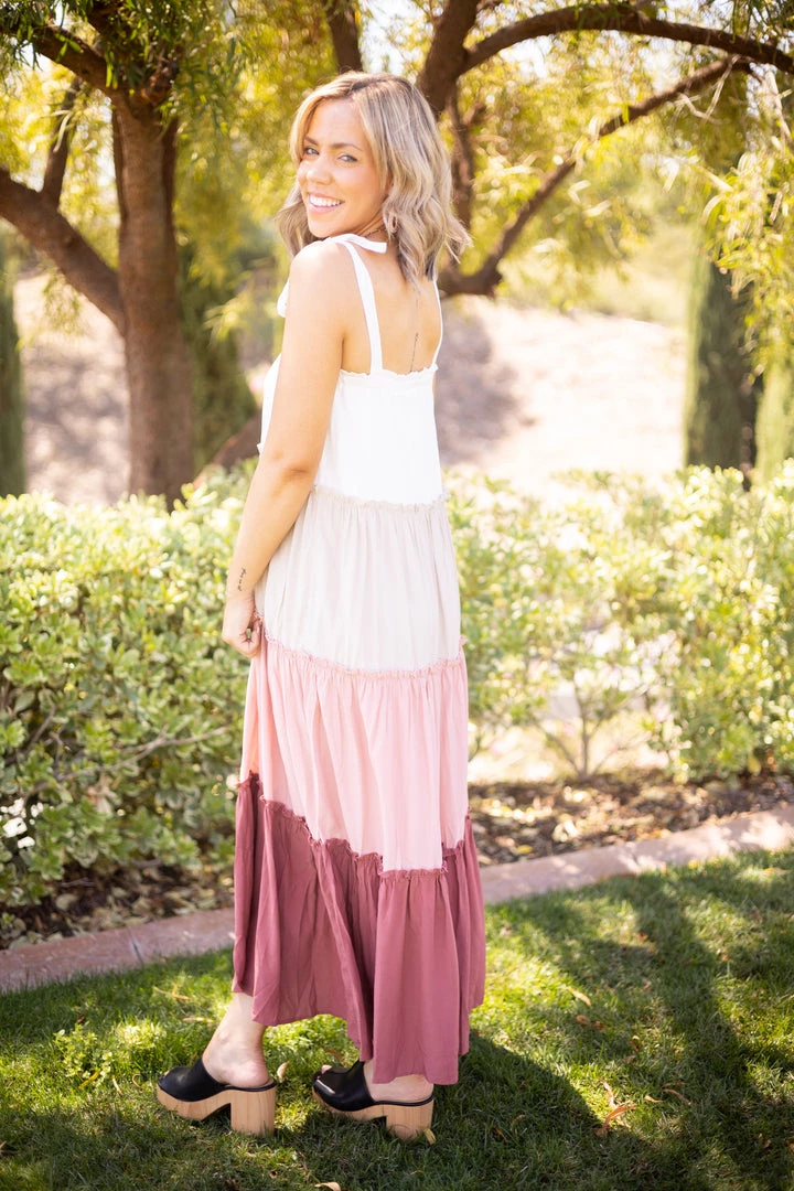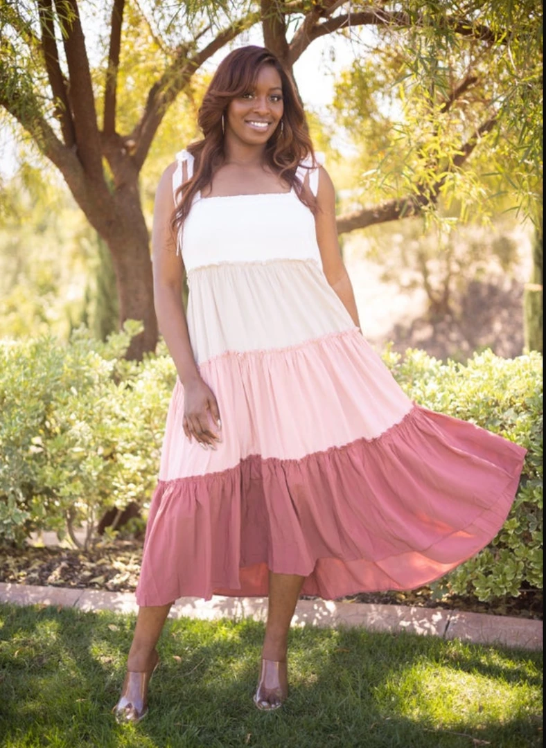 This TIE AT SHOULDER WITH SQUARE NECK WITH RUFFLED COLOR BLOCK DETAIL MAXI DRESS is GORGEOUS!! What a wonderful piece to have in your closet, ladies! You’re gonna love it!