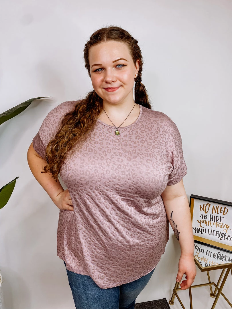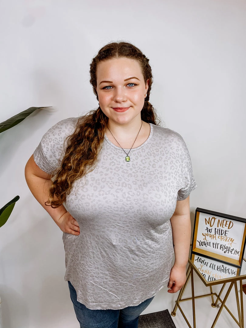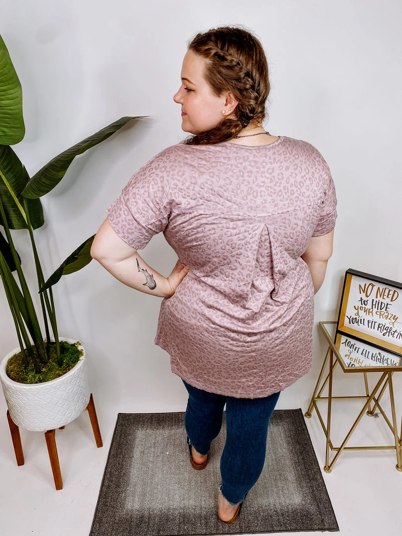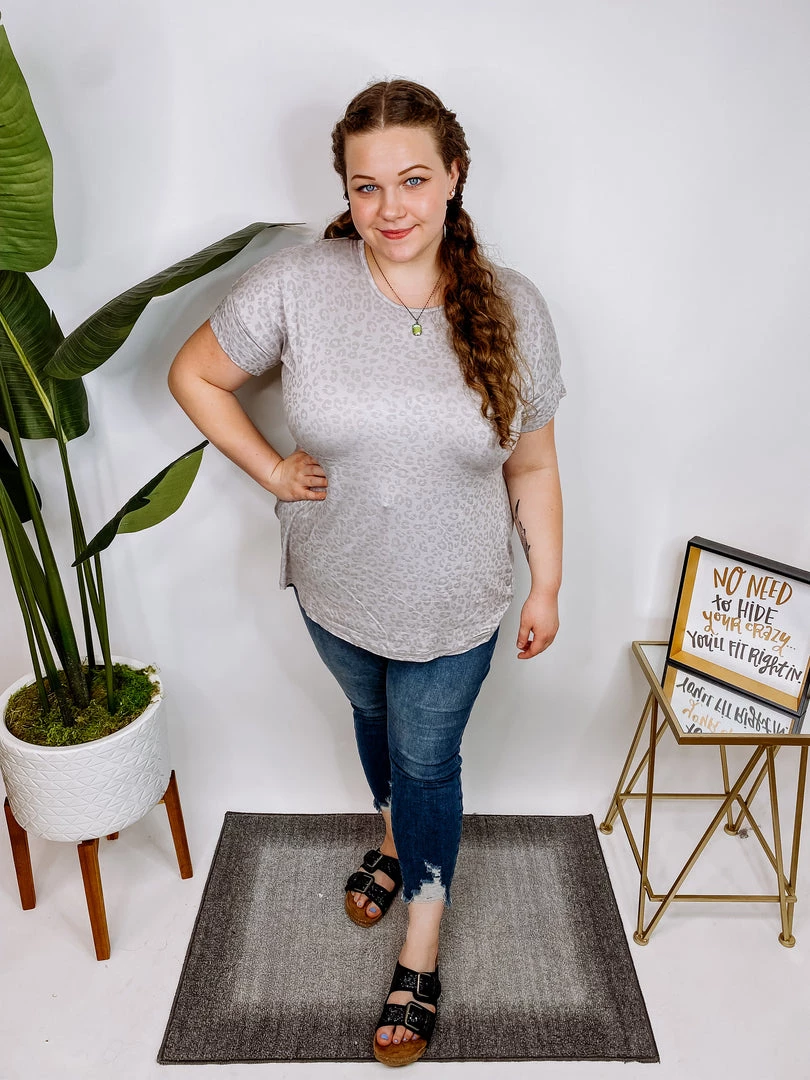This short sleeves, animal print and loose fit top is SO beautiful! Ut has a boat neckline and a leopard print all over it, pinched back detailing and is slouchy and loose! You’re gonna love it!