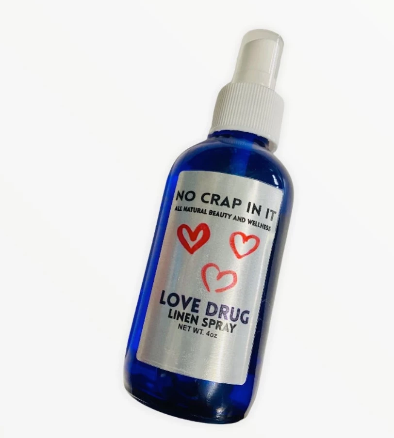 Love Drug Linen Spray 4oz Increase Sexual desire, powerful attraction oil, increases libido and sexual response, helps with impotence, relaxant and sedative properties Refreshing linen spray that will help you get in the mood for a fun night with your partner. Ingredients: Water, witch hazel, cinnamon, sweet orange, geranium, ylang ylang, clary sage, rose