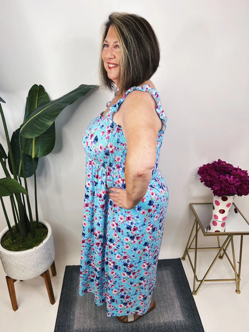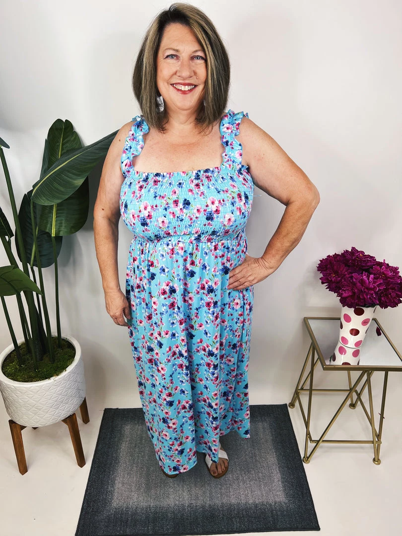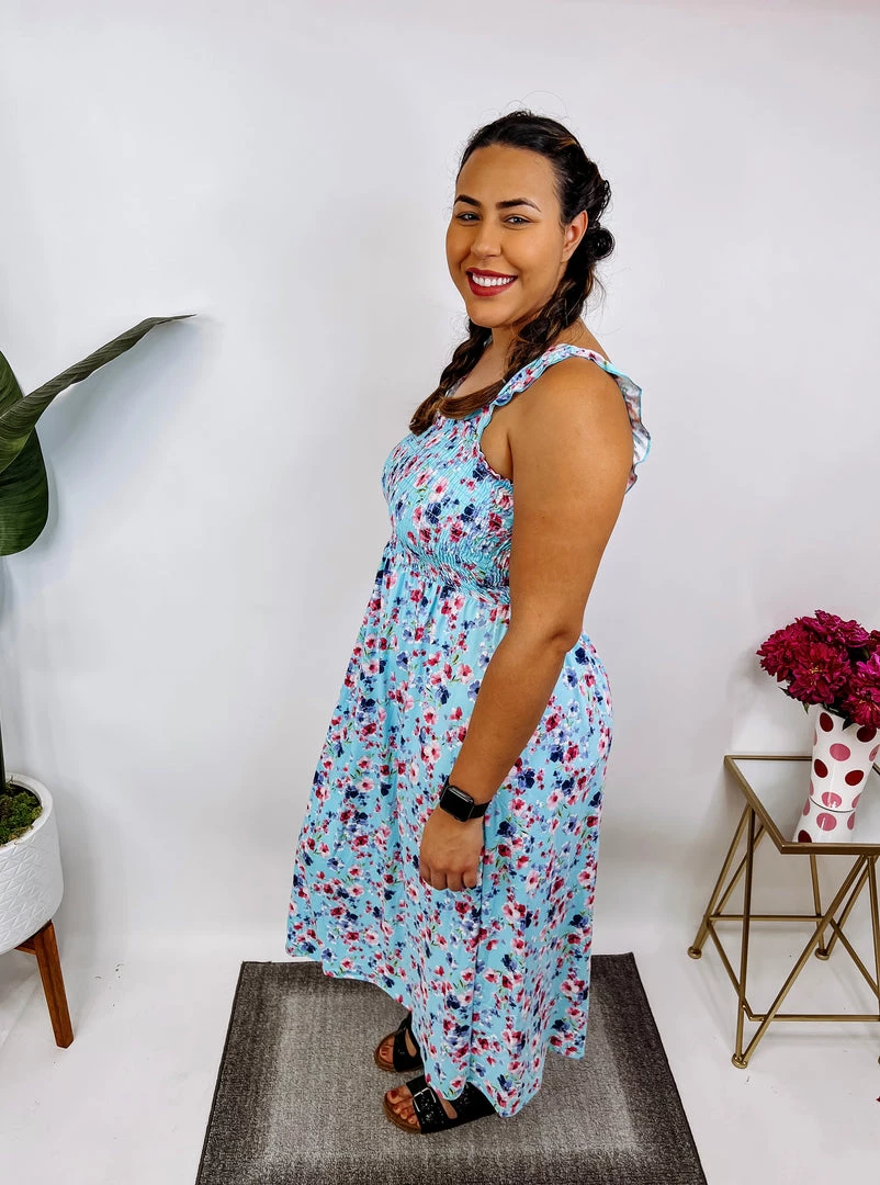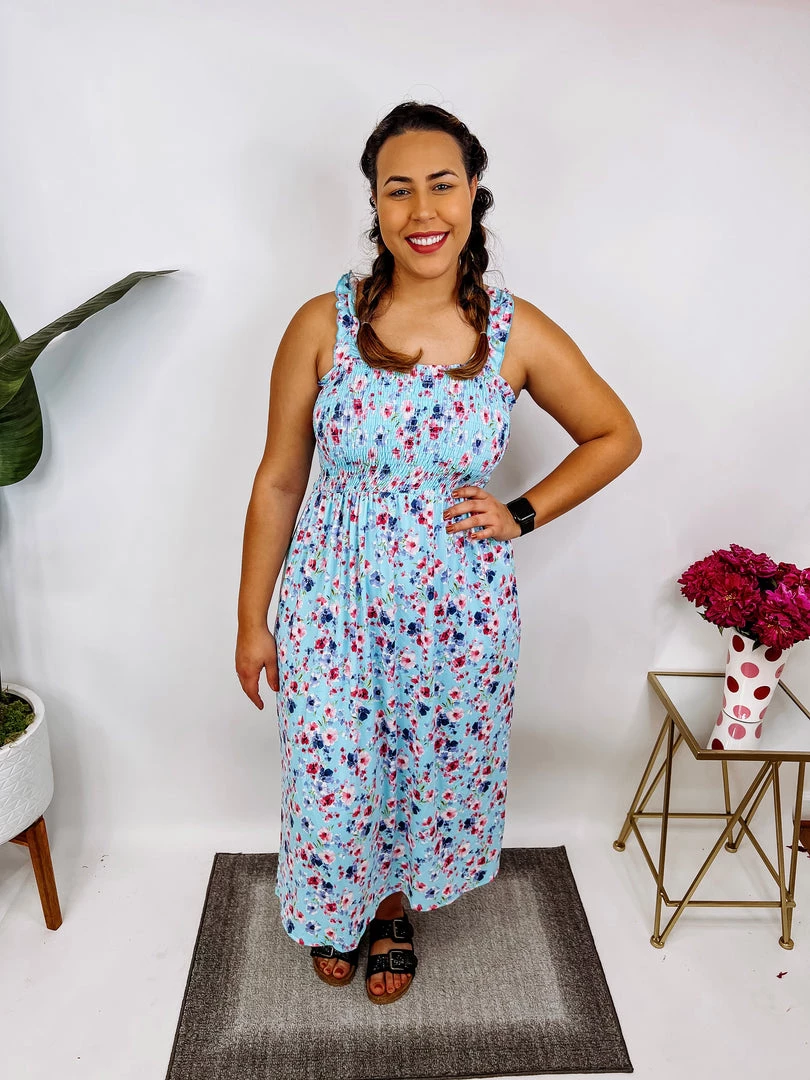 ThisΒ sleeveless floral print knit dress with a square neck featuring a shirred bodice and a relaxed fit is ADORABLE! The fabric is a lightweight buttery soft knit that feels amazing on the skin! You’re gonna love this!