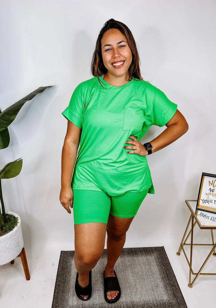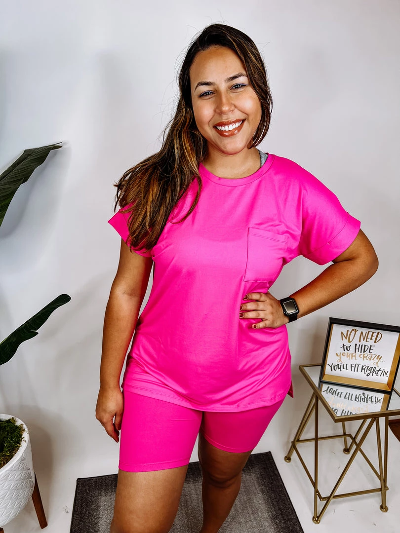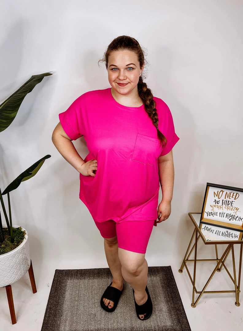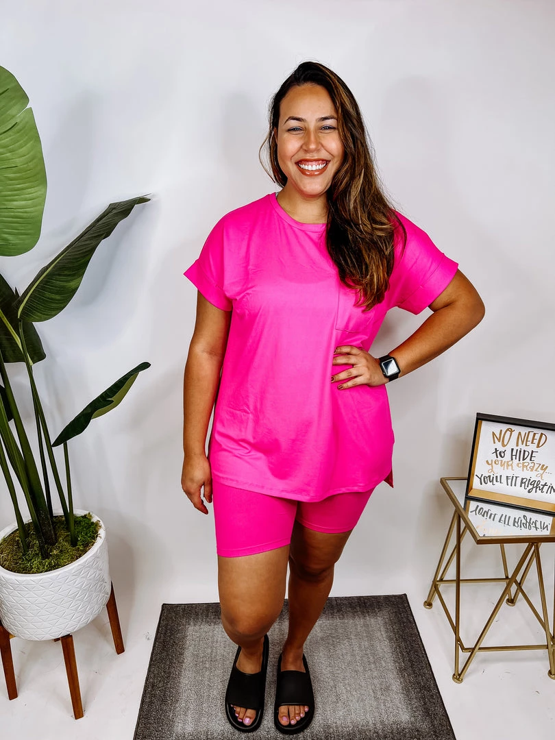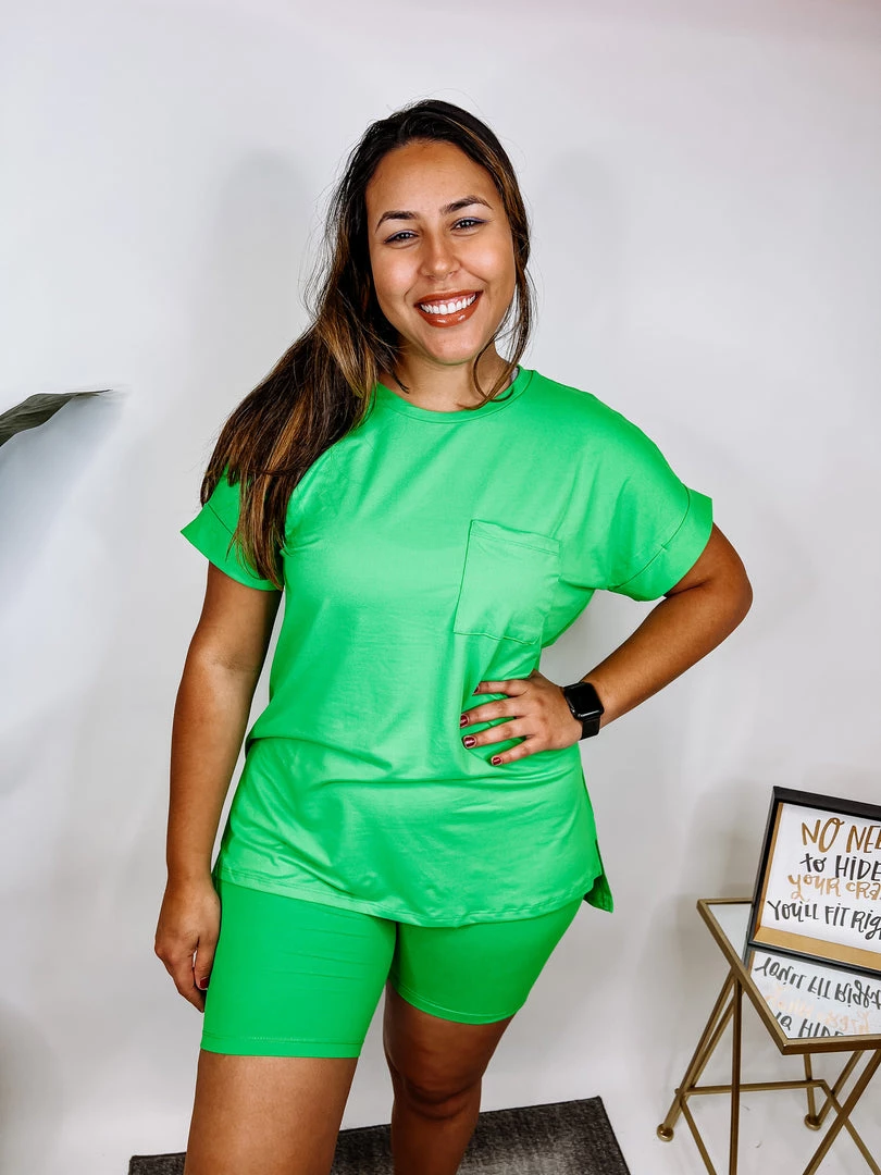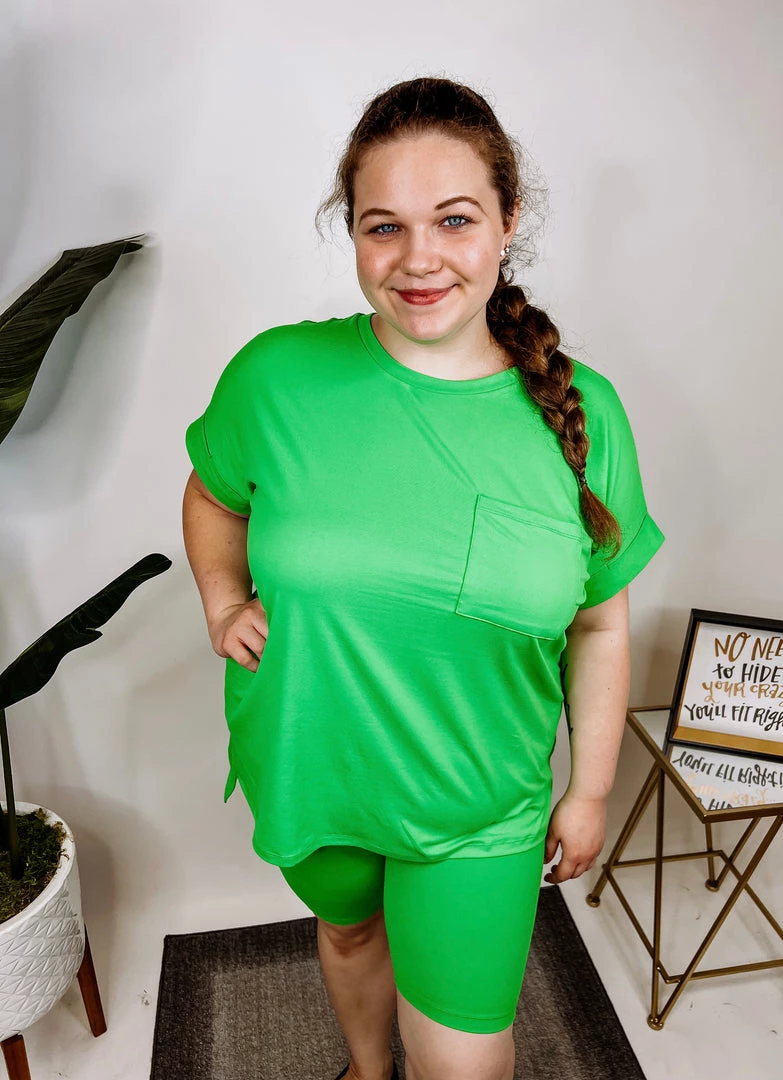 OMG! Look at these AMAZING Zenana set!!! I swear, you are gonna LOVE them! The set is a microfiber short cuff sleeve top and a bike short. They feature a side pocket on the chest! We got them in Black, Bright Green, Neon Hot Pink colors! These will be your favorite outfit for the summer!! They are soft and super comfortable!! Perfect stretch and recovery!!Β