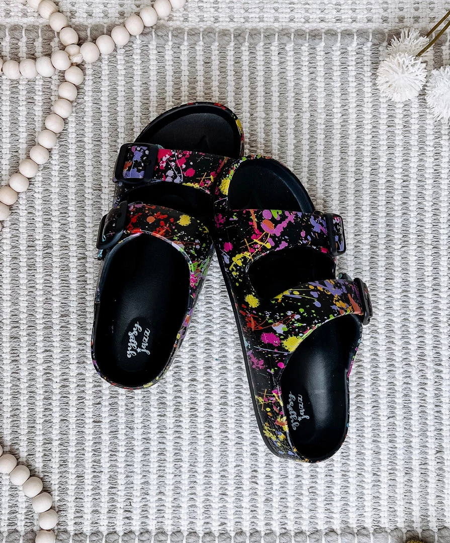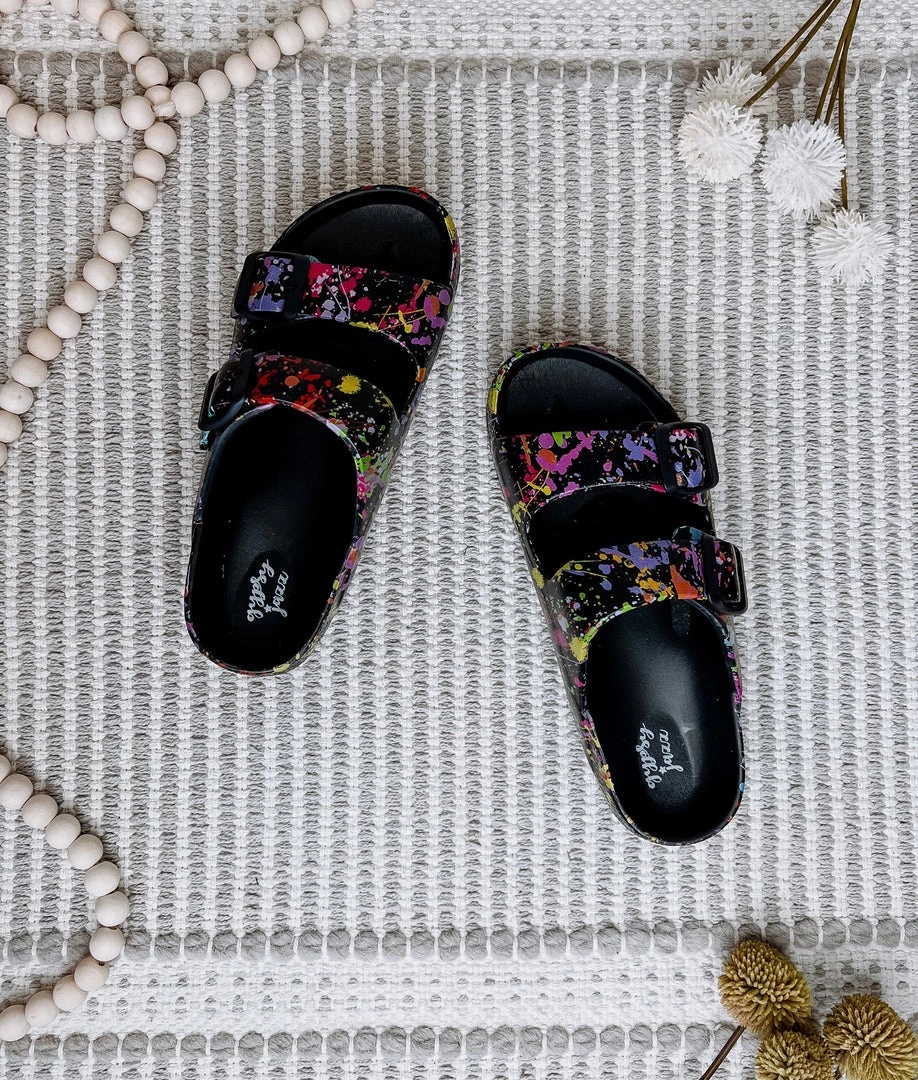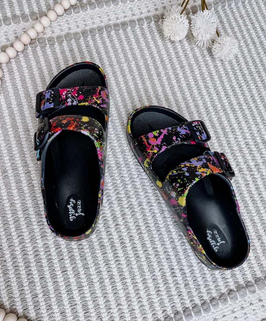 These shoes are so cute and comfortable, they are slip on and ready to go. The black multi color is beautiful and easy to match with any outfit. These shoes feature an adjustable side buckle.Β