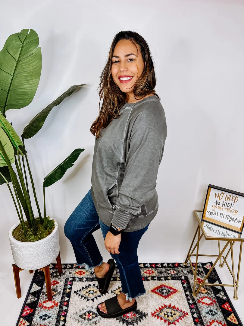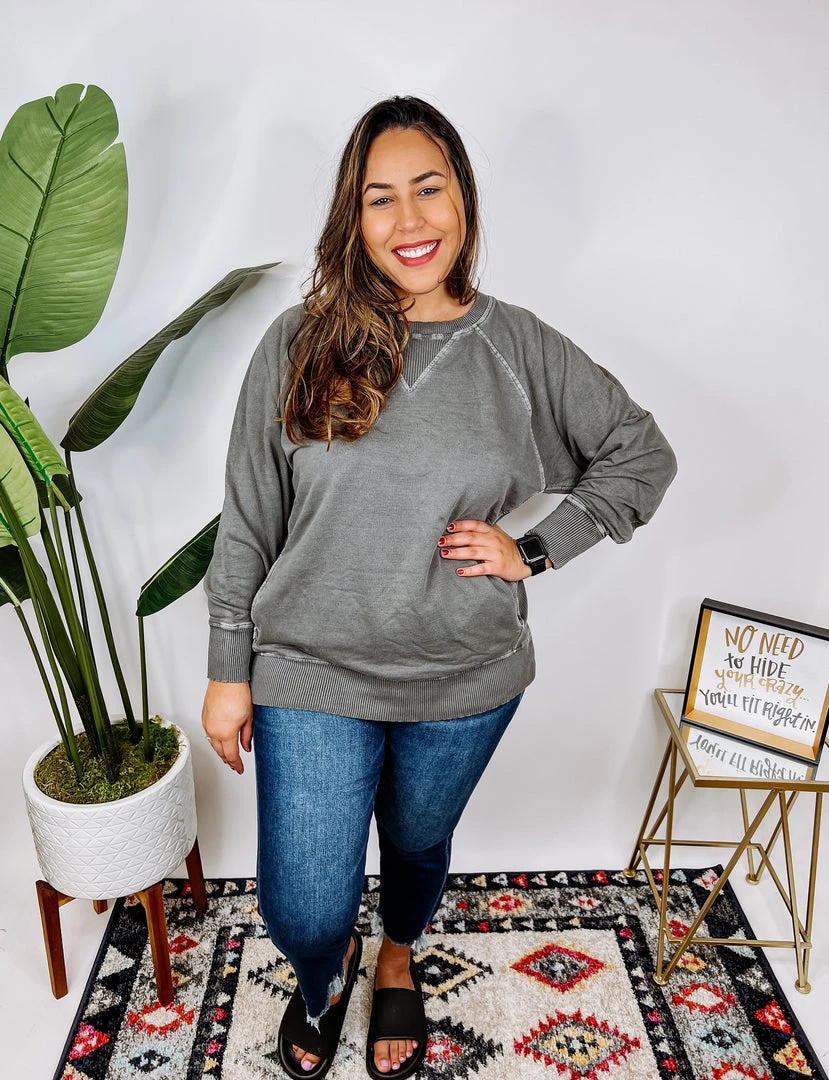 This pigment dyed french terry pullover is so cute! And it has pockets!!! Can you anything expect better?! The material is really comfortable and it has a ribbed detail. You’re gonna love it!
