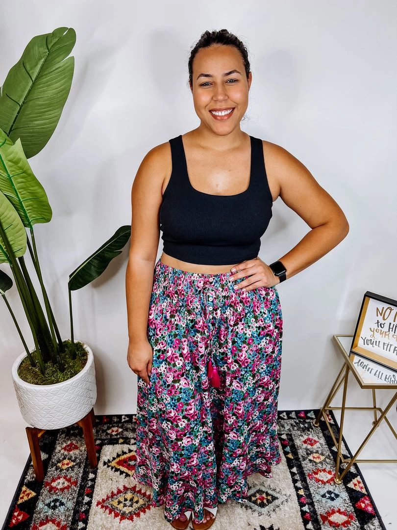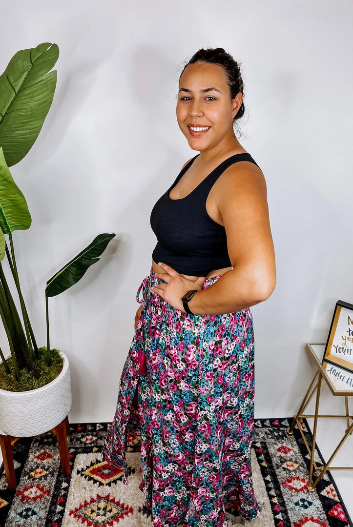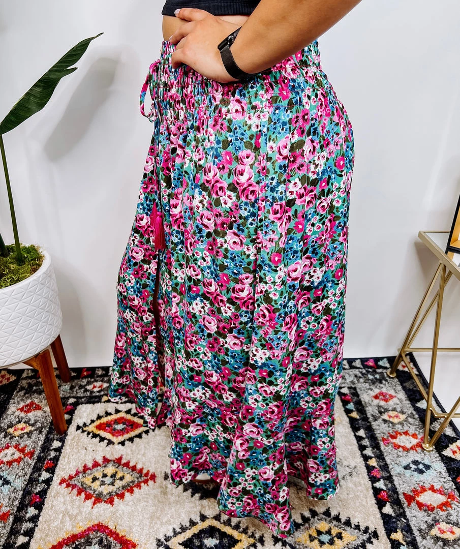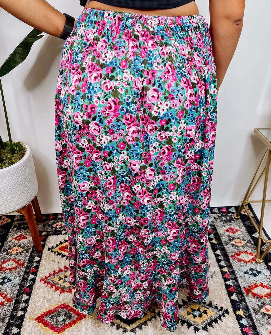 Aww!! What a cute maxi shirt, Guys!! It is fuchsia & mint with a smocked waist and features front button made in a floral print and a sexy side slit!! I am sure this skirt will be your summer favorite one!!Β