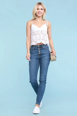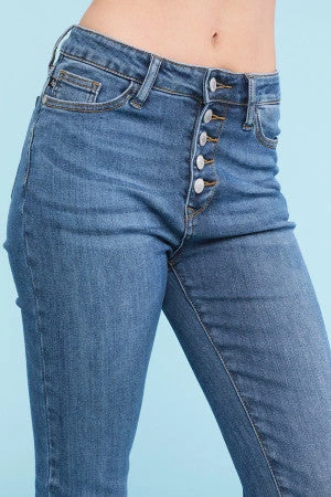 These amazing medium wash, high waisted button fly skinny jeans are perfect for keeping an outfit light and airy! The Judy Blue button fly is unique and so easy to unbutton that you won’t ever have to struggle with the 5 buttons that slip in and out of the button holes like butter!Β