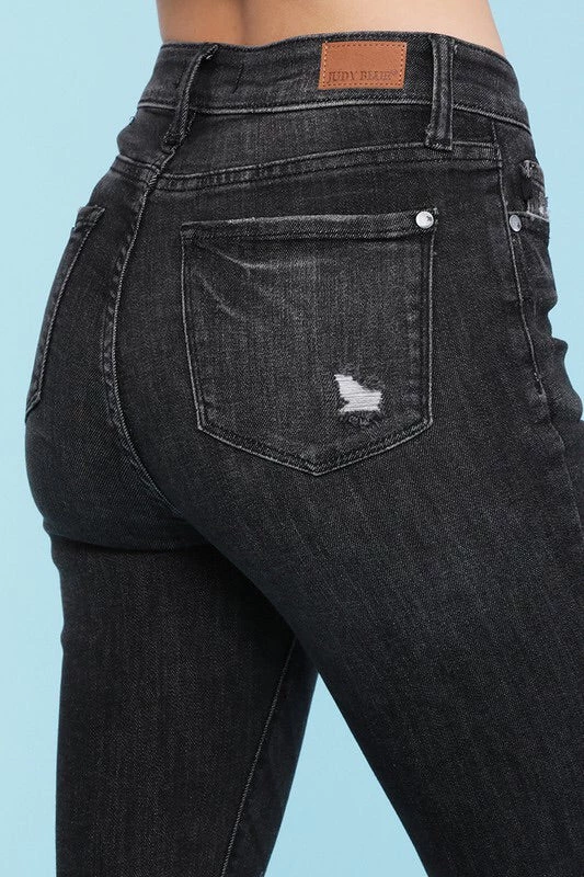 To determine the best size for you in Judy Blue jeans, take your typical department store size and go down by one. For instance, if you wear a size 6 in department store sizing, you would be a size 5 in Judy Blue jeans.