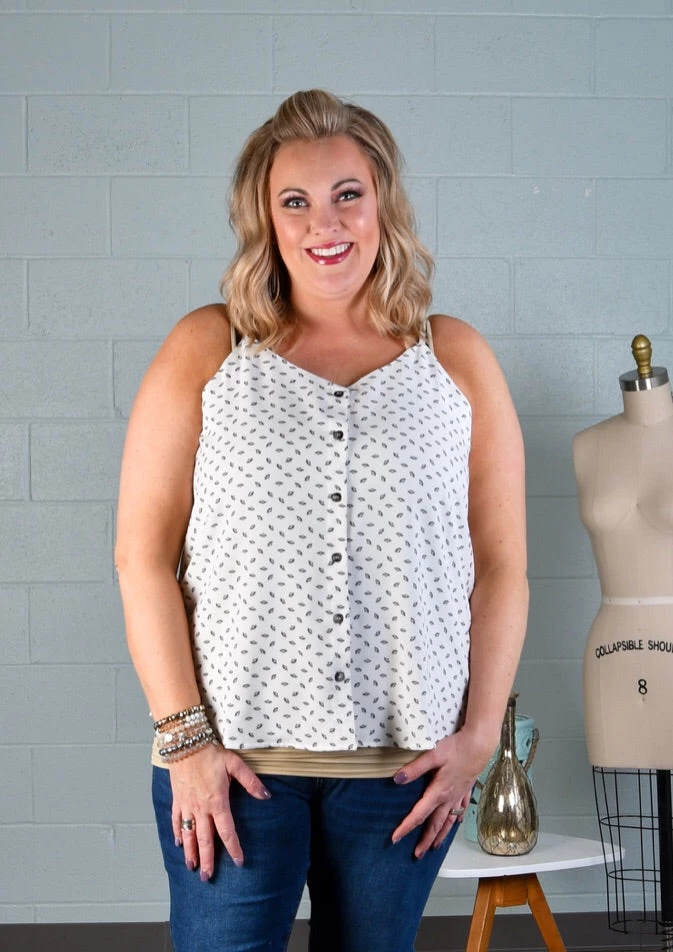 Iris & Rainbow Boutique New Arrivals #428 Black Fan Button Tank