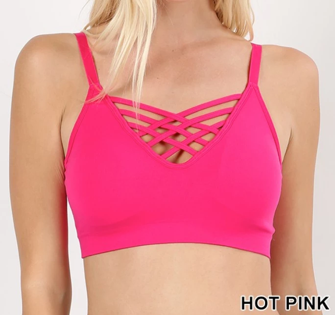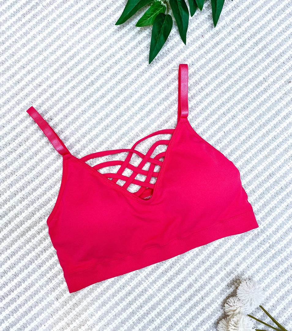 FRONT V-LATTICE, ADJUSTABLE STRAPS BRALETTE WITH REMOVABLE BRA PADS