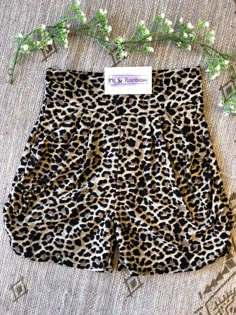 Iris & Rainbow Boutique New Arrivals #B81 Sassy Leopard Harem Shorts – TAN