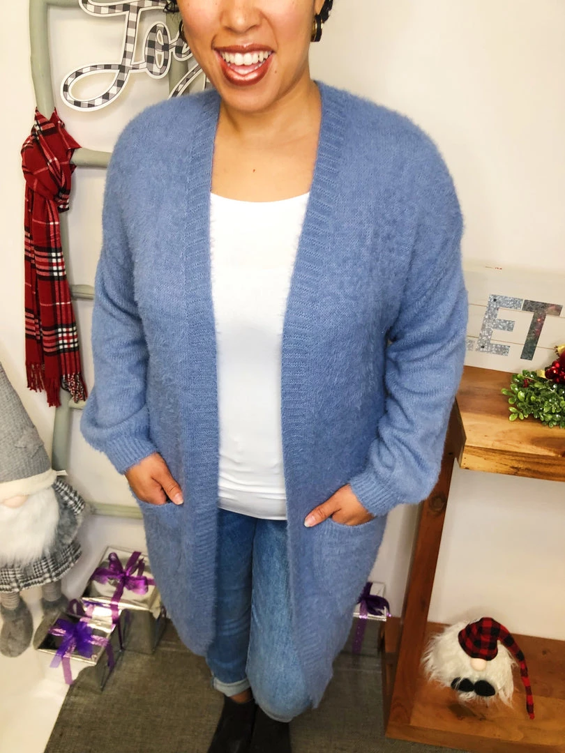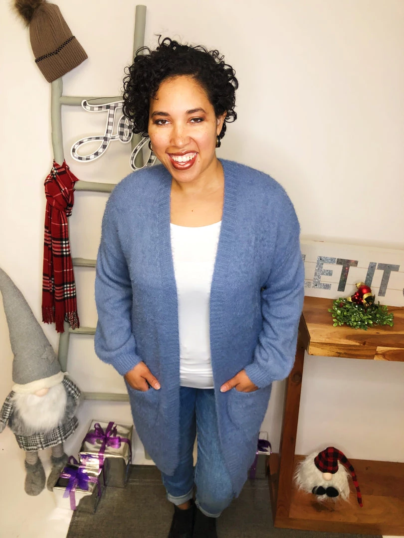 Our bestselling cardigan is back!!! This magenta textured cozy, thick knit oversized cardigan is everything you need this Fall season. It’s super soft with deep pockets. This cozy open front cardigan is brightly colored with gorgeous fuzzy textured material. Keep yourself warm and snuggly in this cardigan that can easily be dressed up for an event or dressed down for casual wear.