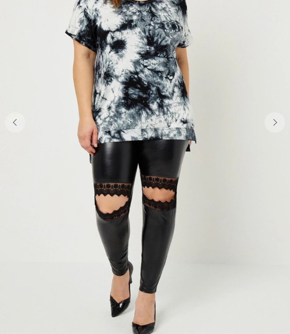 *PU Stretch Fabric *Fitted Elastic Waistline *Cutout Lace Detail *Pull-On Silhouette