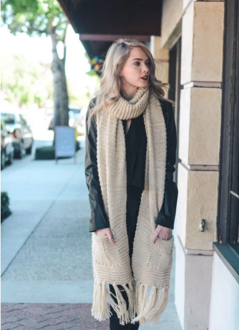 Love scarves? Wish they had pockets? Look no further! This gorgeous soft and cozy pocket scarf has two pockets!! Use them to warm your hands or store your accessories!