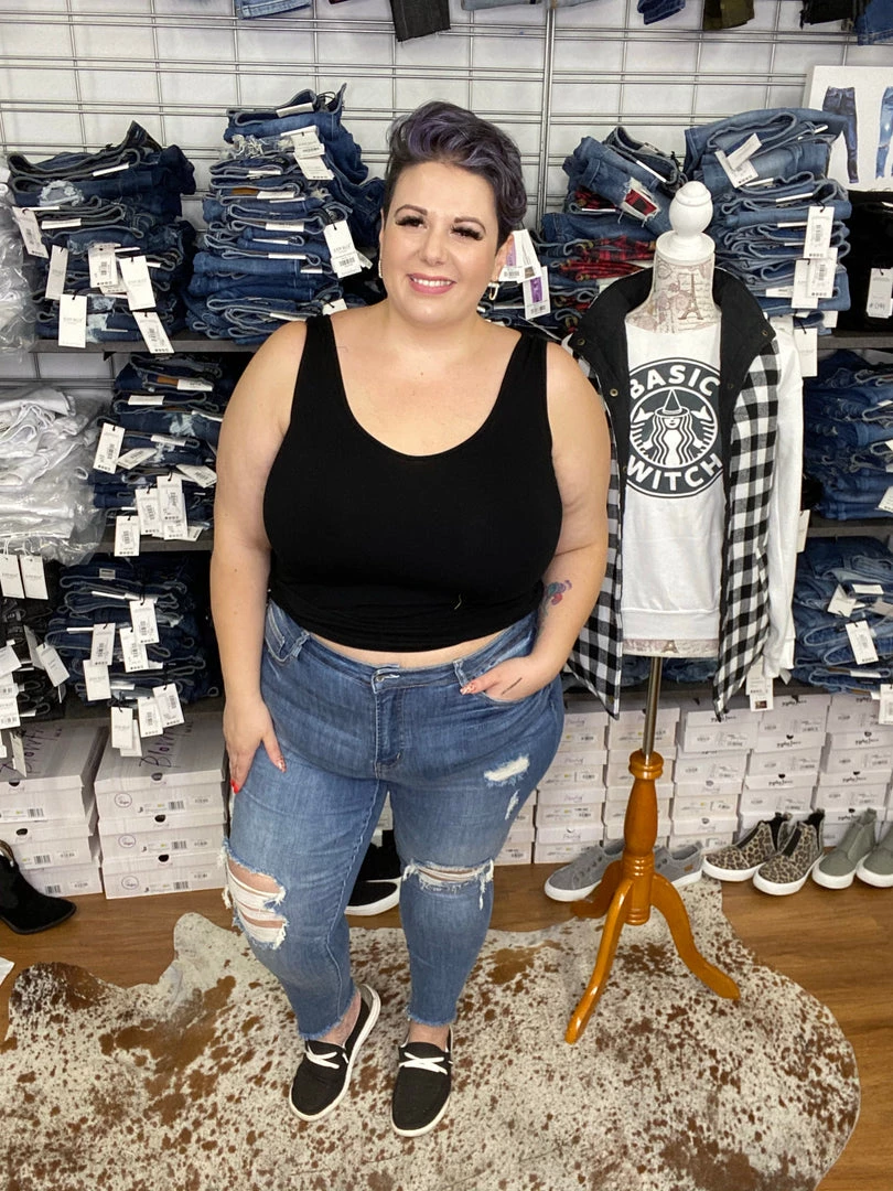 For optimal fit, we recommend sizing down by one size. Iris is a true 2XL/ 18W and she wears a 16W in these jeans.Β