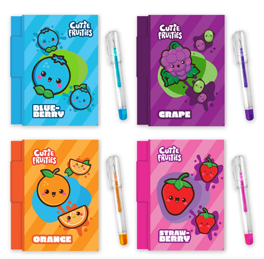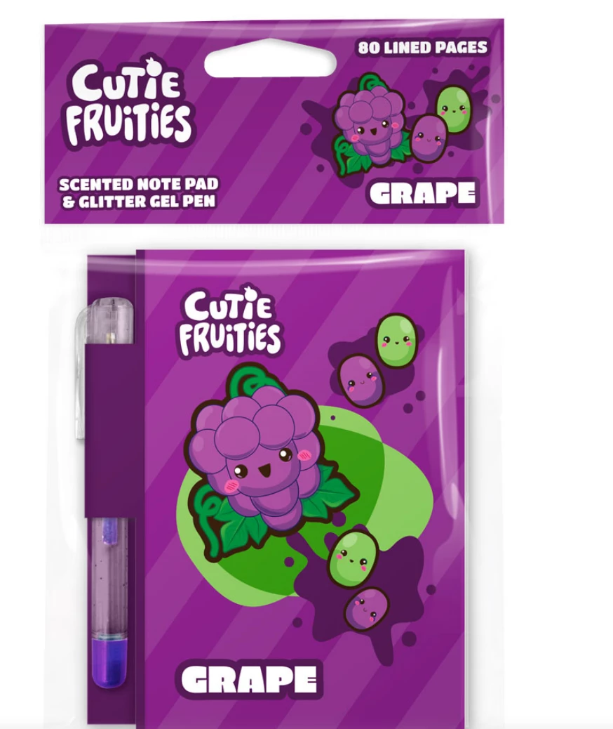 This super cute note pad is scratch and sniff scented and comes with a glitter gel pen! The scent is good for 250 scratches. Each note pad contains 80 pages and includes a matching scented pencil.