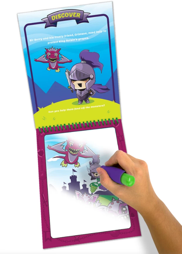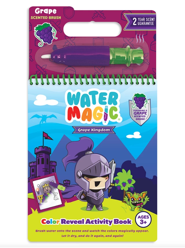 Water Magic is an activity book that is perfect for travel days in the car or on the plane. Fill the brush with water and apply it to the scene boards to watch the colors magically appear! Let it dry for 5 minutes and you can do it over and over again. The brush is scented to match the theme of the book too! Itβs no-mess activity to end the question, βAre we there yet?β