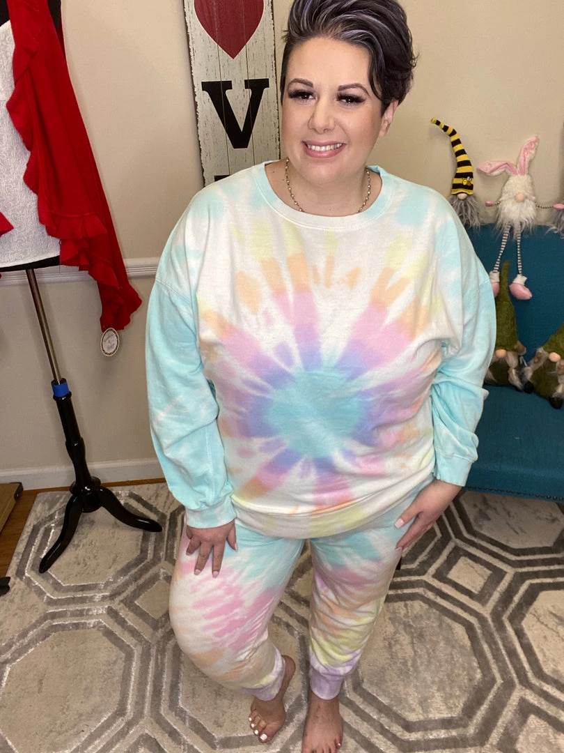 This gorgeous sweatshirt is so soft and the perfect mix of tie dye pastels! You will brighten up your day while staying comfy no matter where you choose to wear this. Pair your sweatshirt with your favorite bottoms or its matching pair “Taste The Rainbow Swirl Joggers,” for a cute and cozy look!
