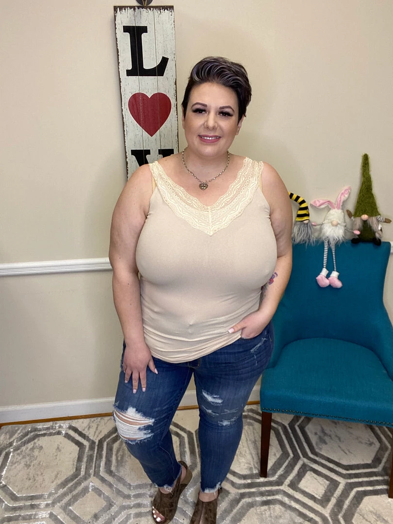 This beautiful lacey tank is v-neck, stretchy and absolutely perfect for layering or wearing as is! The versatile tank with take any outfit you pair it with up a notch- whether it is layered or simply pairing the tank with your favorite bottoms. This top will be your go-to all year long!